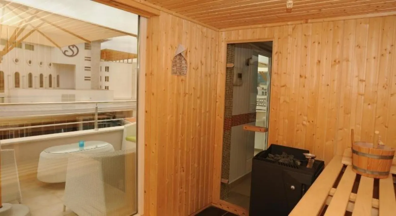 Sunčana terasa je odlično mesto za provođenje vremena. Vruća kada u okviru bazena obećava čistu relaksaciju. Različite wellness opcije su dostupne u hotelu, uključujući spa centar, saunu, hamam, masažne tretmane i solarijum.