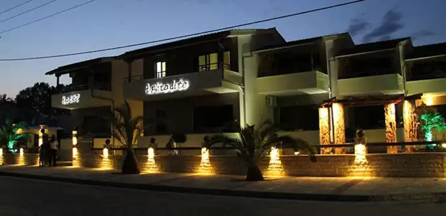 Hotel Aphrodite Keramoti je mali hotel udaljen svega 100 metara od lepe peščane plaže. Grad Kavala nalazi se na oko 40 kilometara udaljenosti od samog smeštaja. Odmah pored hotela je autobusko stajalište gradskog prevoza. U neposrednoj blizini nalaze se svi potrebni turistički sadržaji. Hotel ima ukupno 20 soba sa mini kuhinjom u svakoj.Ležaljke i suncobrani na plaži se doplaćuju.Ishrana: doručak - švedski sto.