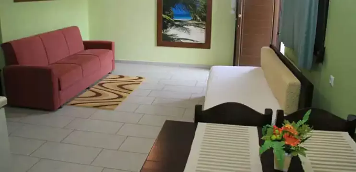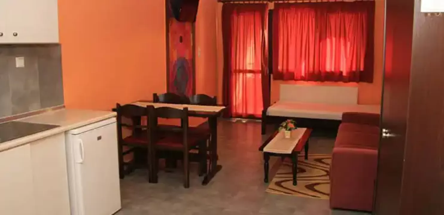 Ukupno 20 soba: 2 Studios (~30 m²), 18 Apartments (~45 m²).U sobama: mini kuhinja (električni šporet sa 2 ringle, posudje), klima-uredjaj, frižider, SAT-TV, wifi, tuš, fen, balkon/terasa.Studio: bračni krevetApartman: salon sa kuhinjom, sofa, krevet za jednu osobu, odvojena spavaća soba sa 2 odvojena kreveta ili bračnim krevetom, 2 klima uredjaja, 2 televizora.
