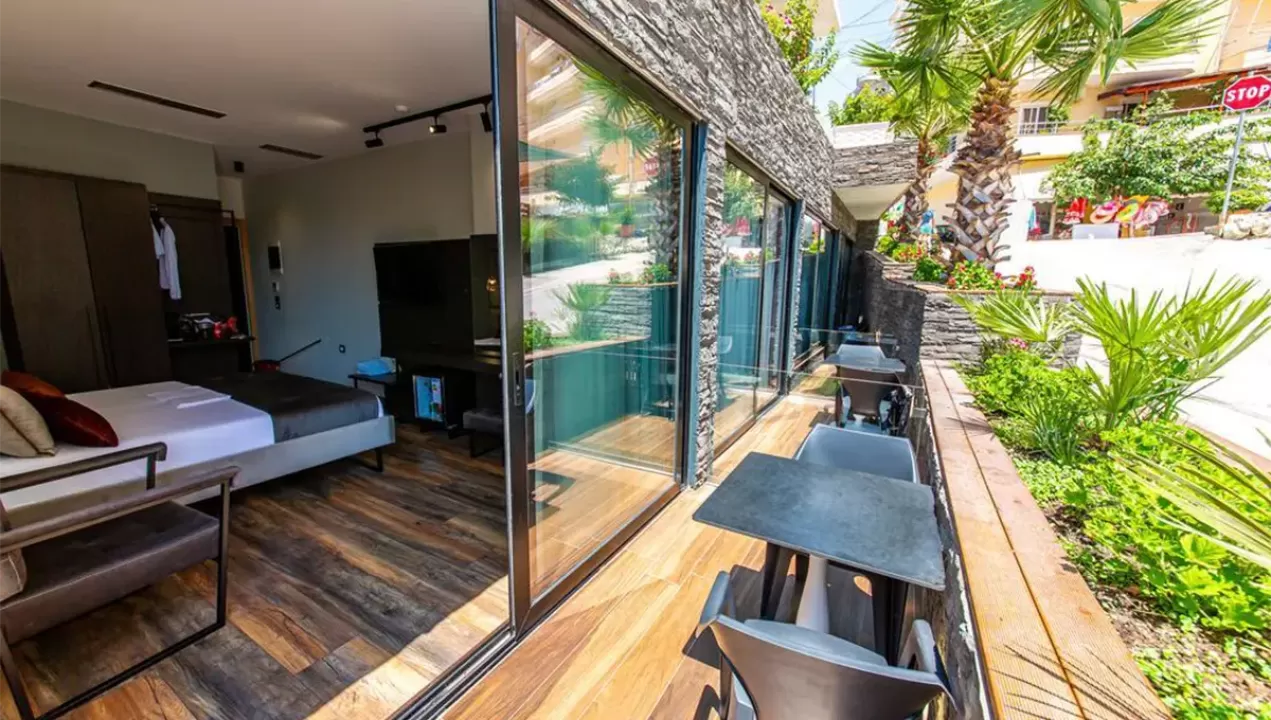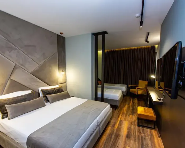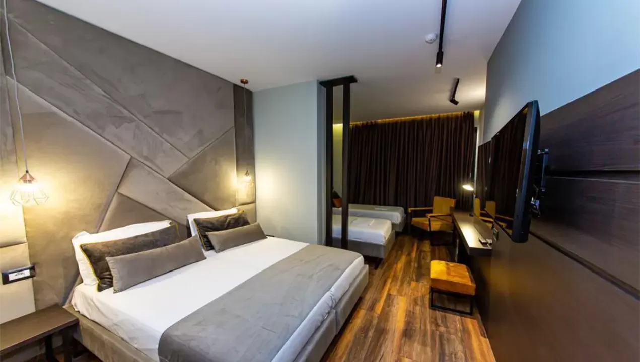 Hotel Apollon Saranda je idealno lociran na oko 700 metara od glavnog gradskog trga u Sarandi, ima sopstvenu plažu sa besplatnim ležaljkama i suncobranima za goste hotela, definitivno najveća prednost ovog hotela.. Hotel Apollon Saranda se nalazi na oko 1000 metara udaljenosti od trajektne luke i glavne autobuske stanice. Hotel je smešten na 5 km od Zamka Lekureši, odakle se pruža predivan pogled na Sarandu. Ksamilska ostrva su udaljena oko 15 km, a do ostrva Krf može se stići za 1 sat vožnje trajektom. Antički grad Butrint koji je pod zaštitom UNESCO-a i Nacionalni park Butrint nalaze se na 30 km od hotela. Pored samog hotela staju lokalni autobusi koji saobraćaju do plaža u letovalištu Saranda.