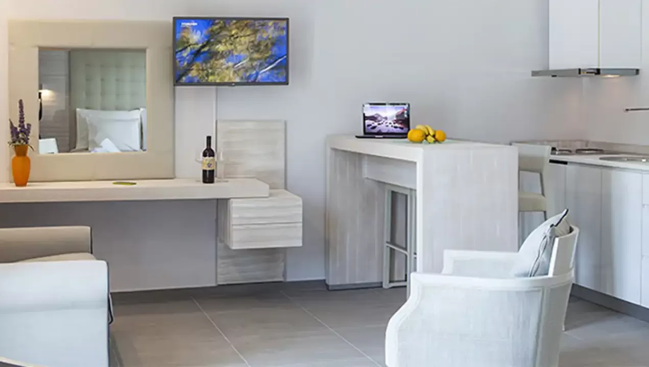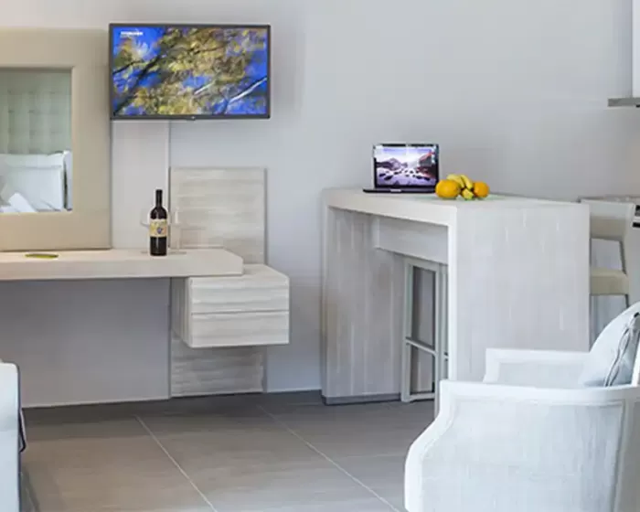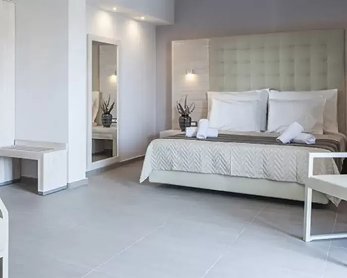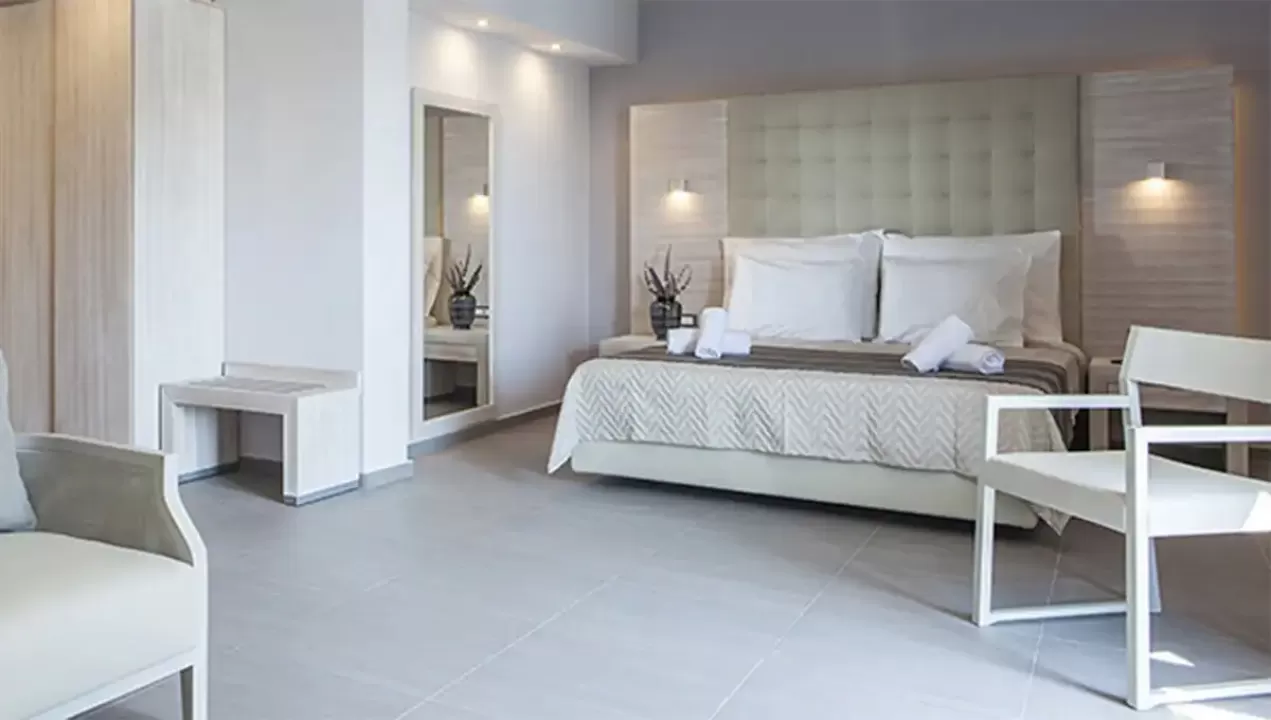 Ukupno 21 soba: Junior Suites (~44m²), Suites (~55 m²).U sobama: klima, telefon, mini frižider, SAT TV, LCD televizor, Wi-Fi internet, kada/tuš, fen, sef, bade mantil i papuče, balkon/terasa.