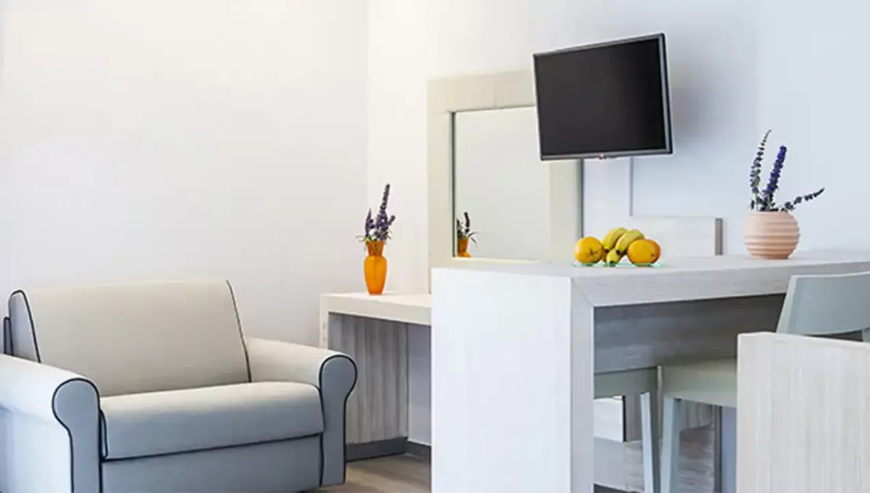 Suite - idealno za porodice. Dnevni boravak (dupla sofa i fotelja) i odvojena spavaća soba sa bračnim krevetom.
