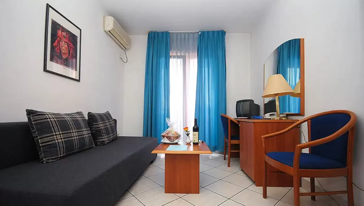 Lepo opremljene sobe i porodični apartmani poseduju direktnu telefonsku liniju, pristup internetu ,kablovsku televiziju, mini-bar, kupatila sa fenom, a većina soba i apartmana ima i balkon.