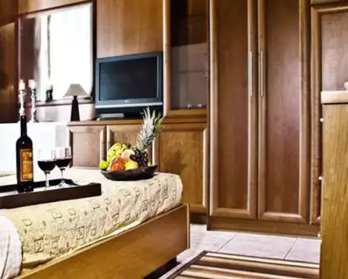 Sobe: sobe su kvalitetno i funkcionalno opremljene sa pogledom na bazen, baštu a neke i sa pogledom na more. Standardne sobe imaju kupatila sa fenom za kosu, SAT TV, mini bar, sef (uz doplatu), internet (besplatan), klimu(uz doplatu), balkon ili terasu.