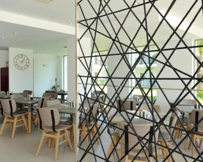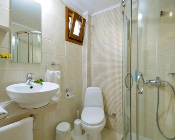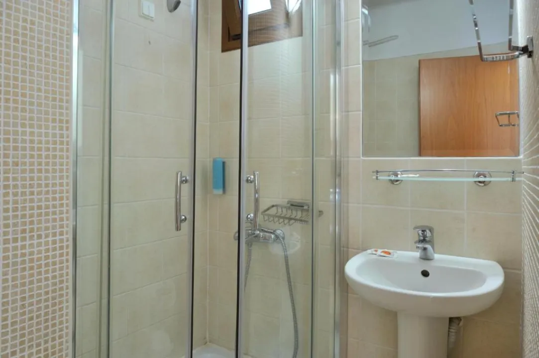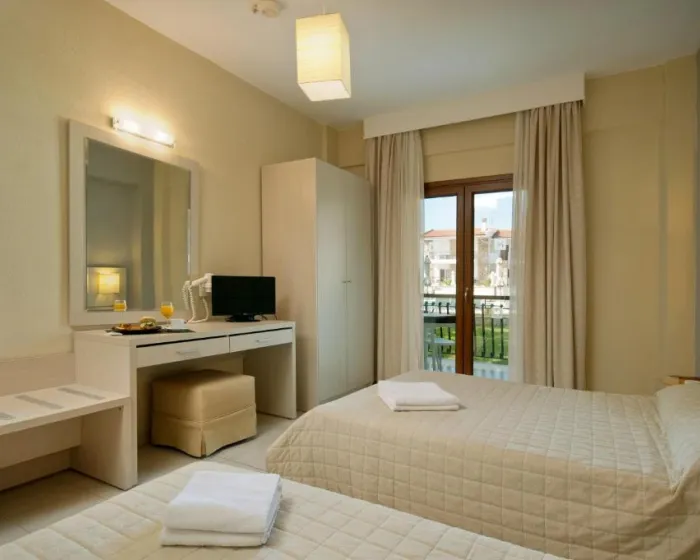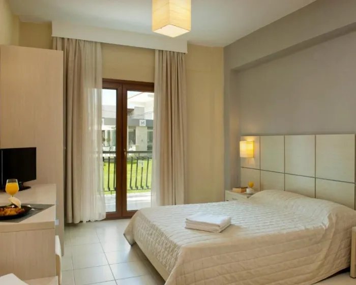 Ukupno 42 sobe: Singles (~20 m²), Doubles (~24 m²), Triples (~24 m²). U sobama: opremljena mini-kuhinja (električni šporet sa 2 ringle, posudje), klima-uredjaj, plazma TV, SAT TV, mini frižider, tuš, fen, Wi-Fi internet, balkon/terasa.