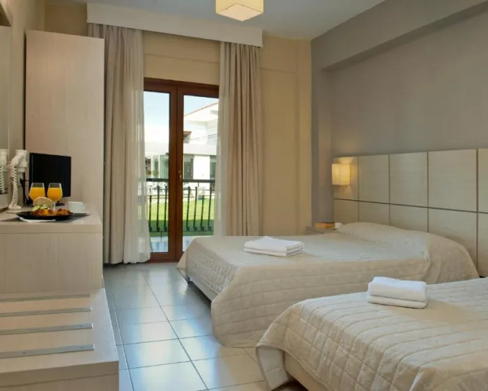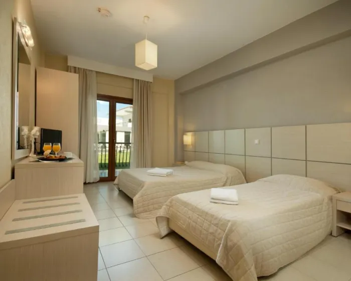 Sobe su klimatizovane i imaju grejanje. U pojedinim sobama nalazi se balkon ili terasa sa pogledom na vrt. Sobe imaju francuski ili queen size ležaj. Na zahtev je moguće obezbediti pomoćne ležajeve. Na raspolaganju je čajna kuhinja. U sobama se nalazi i telefon, televizor i besplatan Wi-Fi. Kupatila su opremljena tušem i fenom za kosu. Na raspolaganju su i sobe prilagođene osobama sa invaliditetom. Hotel raspolaže porodičnim i sobama za nepušače.