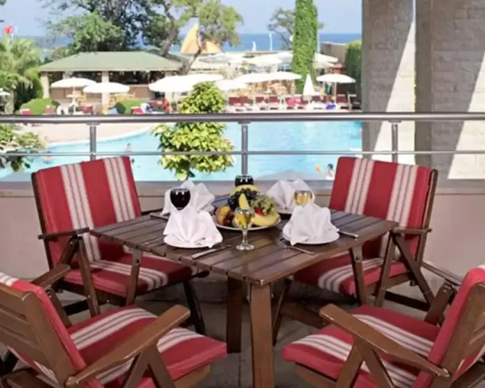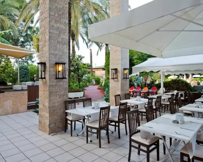 recepcija, glavni restoran, a la carte restoran, snack restoran u annex zgradi, lobi bar, bar pored bazena, snack bar, disko bar, bar pored bazena u anex zgradi, bazen i dečiji bazen u glavnoj zgradi, tursko kupatilo, sauna, fitnes, animacija,disko, muzika uživo određenim danima. U anex zgradi takođe ima bazen za odrasle i decu sa dva tobogana i relax bazen, dečiji klub za decu 4-12 god. od 10-12 h i 14-17 h, mini disko, dečije igralište, fitnes, stoni tenis, aerobik, odbojka na plaži; usluge i aktivnosti uz doplatu: room service, sva uvozna i flaširana pića, sveže ceđeni sokovi, sportovi na vodi, Wi-Fi internet, šoping centar, rent a car, sef u sobama, telefon, fax, kopir, poštanske usluge, servis za pranje rublja, spa usluge i masaža, bilijar, igrice i video igrice