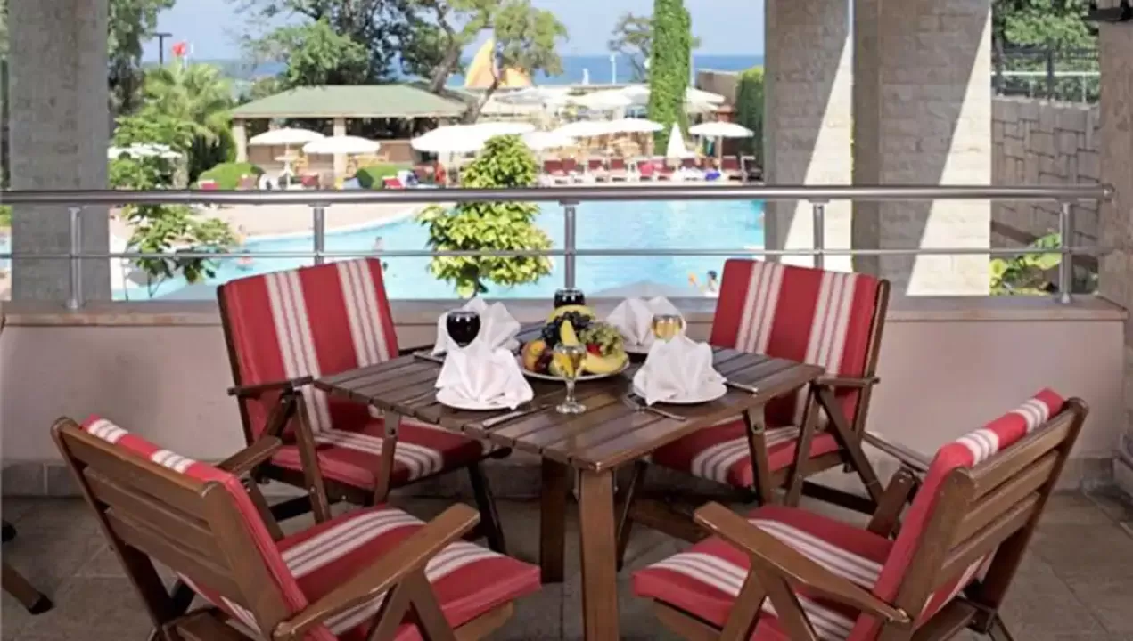 kupatilo, fen, klima-uredjaj, SAT TV, telefon, mini-bar (prazan, voda i sok samo prvog dana dolaska), sef (doplata), balkon sa garniturom za sedenje