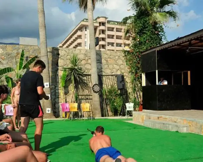 Glavni restoran na bazi otvorenog bufea, A’La Carte restoran, bar pored bazena i bar na plaži. Posebno se plaća prema pravilima hotela: usluga lekara (na zahtev), frizer, usluga pranje veša, telefon, fax, internet kafe, kompjuterske igre, Wi Fi internet.Otvoreni i zatvoreni bazeni za decu i odrasle, 3 tobogana, tursko kupatilo, sauna, stoni tenis, fitnes, odbojka na plaži, zabavni program tokom dana i uveče, mini klub za decu od 4 do 12 godina, dečije igralište, mini disko uveče. Posebno se plaća prema pravilima hotela: sportovi na vodi, masaža, Spa, bilijar, kompjuterske igre.