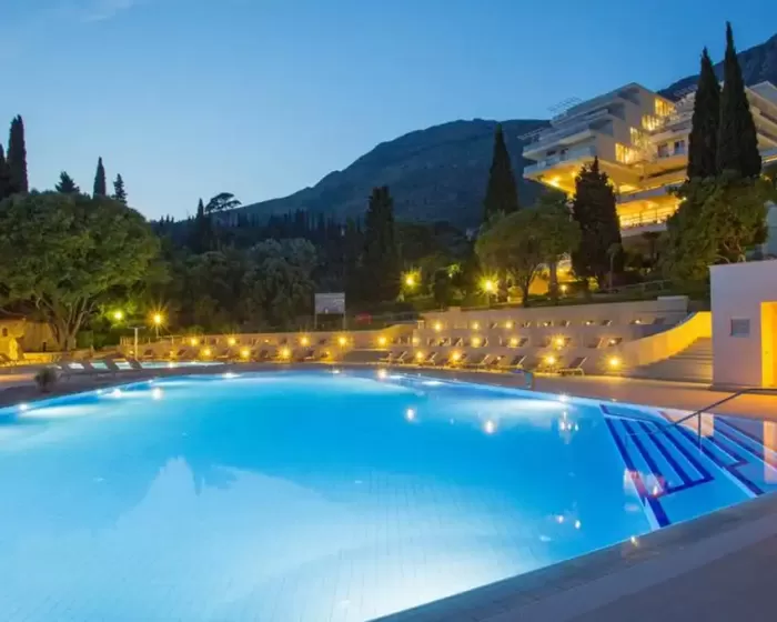 recepcija, lobi bar, aperitiv barovi, piano bar, menačnica, terasa za sunčanje, otvoreni bazen, ležaljke i suncobrani oko bazena, zatvoreni bazen sa morskom vodom, salon lepote, frizer, fitness centar, spa zona sa saunom, pool bar, biznis korner, restoran, wifi internet, mediteranski vrt, Beach bar Oleander, javni parking