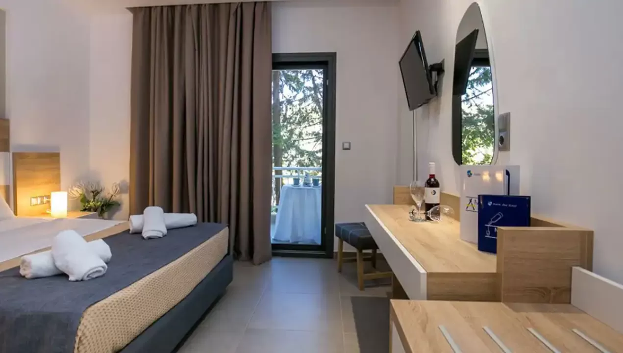Hotel Astris Sun Astris Tasos je jedan od ekonimičnijih hotela sa uslugom polupansiona u ponudi za agencije za predstojeće leto, vrlo popularan kod parova i porodica sa jednim detetom, jer hotel ne može da primi dva deteta u sobe.