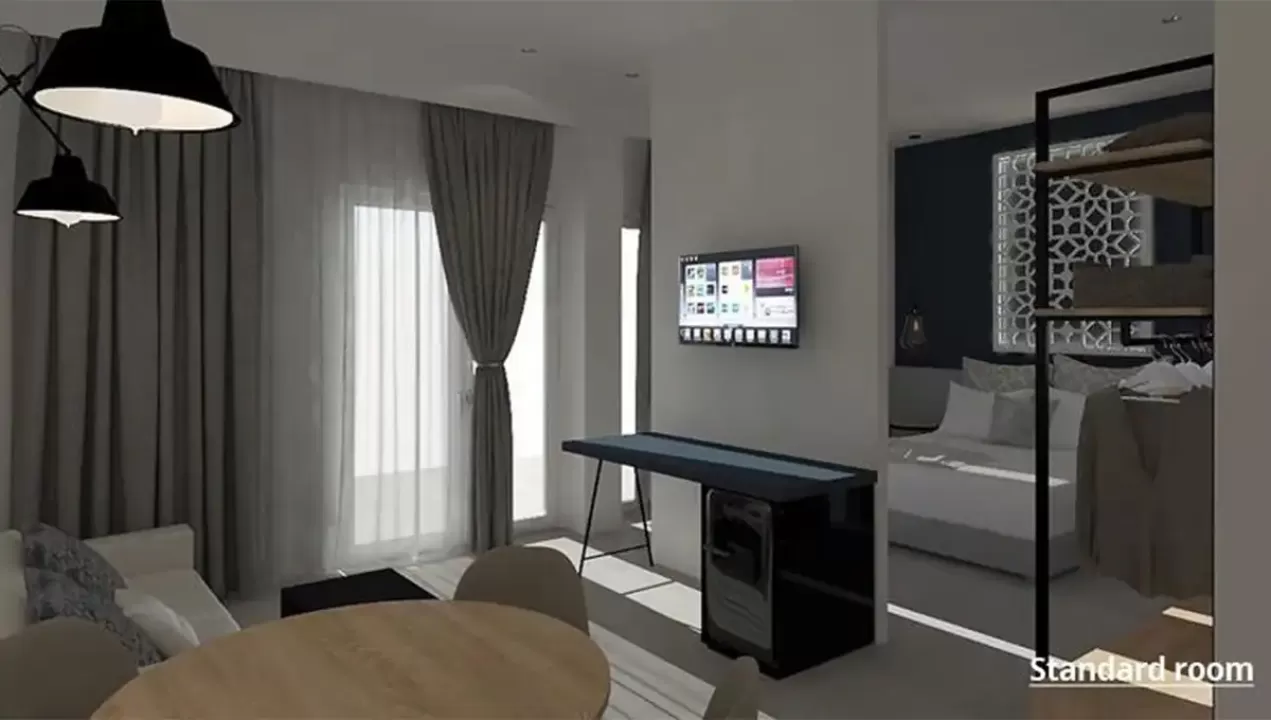 Sobe su opremljene klima uređajem i centralnim grejanjem. Balkon ili terasa je standardna karakteristika nekih soba. Sobe imaju bračni krevet i sofu na razvlačenje. Dodatni kreveti se mogu zatražiti. Na raspolaganju su i sef i radni sto. Dodatne karakteristike uključuju frižider i stanicu za čaj/kafu. Za udobnost gostiju obezbeđen je set za peglanje. Na raspolaganju su i telefon, satelitska televizija i ViFi (bez doplate). Papuče su uključene. Fen za kosu i telefon su dostupni u kupatilima, koja su opremljena tušem. Kao posebnost, kupatila su takođe opskrbljena kozmetičkim proizvodima i izborom peškira. Hotel ima porodične sobe i sobe za nepušače.