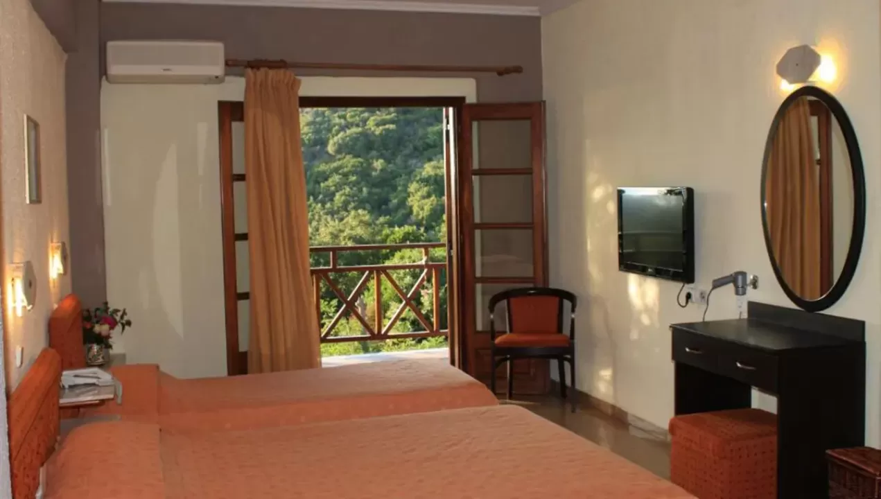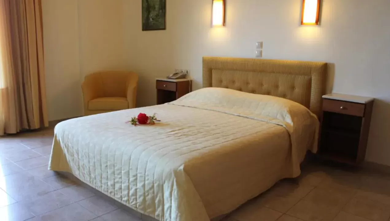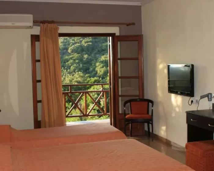 Standard soba bočni pogled more oko 20-30 m² , nalaze se na spratu, pogled na zaliv. Poseduju francuski ili dva standardna ležaja i sofu, predvidjene za 2-6 osoba.