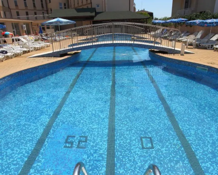 Kompleks bazena osigurava udobno plivanje sa svojim unutrašnjim i spoljašnjim bazenima i prijatno zagrejanom vodom. Deca mogu uživati u posebnom delu bazena samo za njih. Gosti mogu uživati u osvežavajućim pićima u baru pored bazena i opuštajućem kupanju u đakuziju. Kratki predah ili ceo popodne na suncem okupanoj terasi, sa ležaljkama i suncobranima, je vreme provedeno na pravom mestu. Gosti mogu uživati u raznovrsnim unutrašnjim sportovima, uključujući teretanu, stoni tenis, bilijar i pikado. Sauna i tretmani masaže su dostupni u wellness prostoru. Koordinatori aktivnosti organizuju zabavni program za odrasle i decu. Copyright GIATA 2004 - 2024. Višejezično, powered by www.giata.com za klijenta br. 124971
