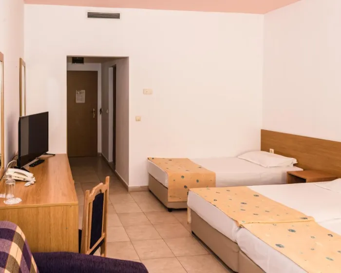 Klima i centralno grejanje osiguravaju udobne temperature u sobama. Balkon je standardno uključen u nekim sobama. Sobe imaju bračni krevet i sofu. Dostupne su odvojene spavaće sobe. Kreveti za decu i pomoćni kreveti mogu se zatražiti za mlađe goste. Mini bar i radni sto su takođe dostupni. Telefon, TV i WiFi (bez dodatne naplate) pružaju sve neophodno za udoban odmor. Kupatila su opremljena tušem, kadom i bideom. Fen za kosu i ogledalo za šminkanje dostupni su za svakodnevnu upotrebu. Hotel ima porodične sobe i sobe za nepušače.