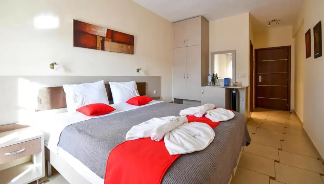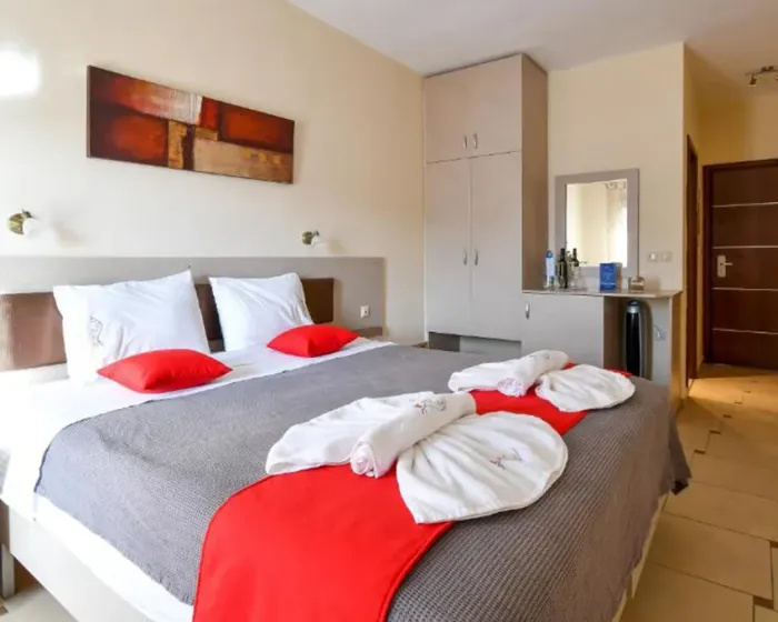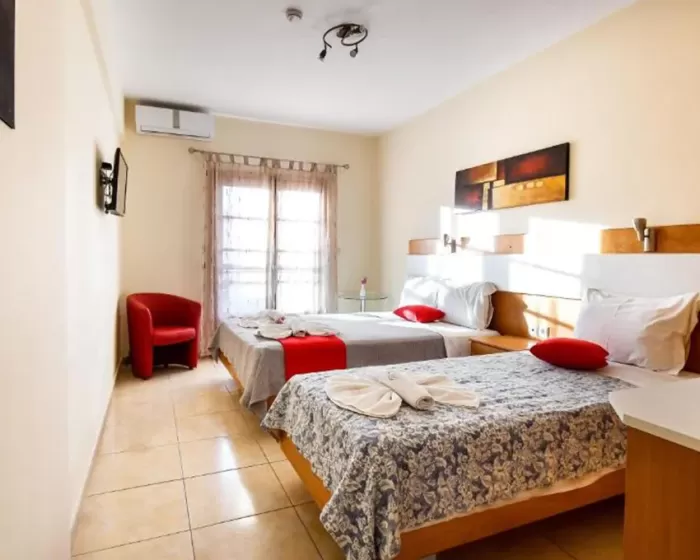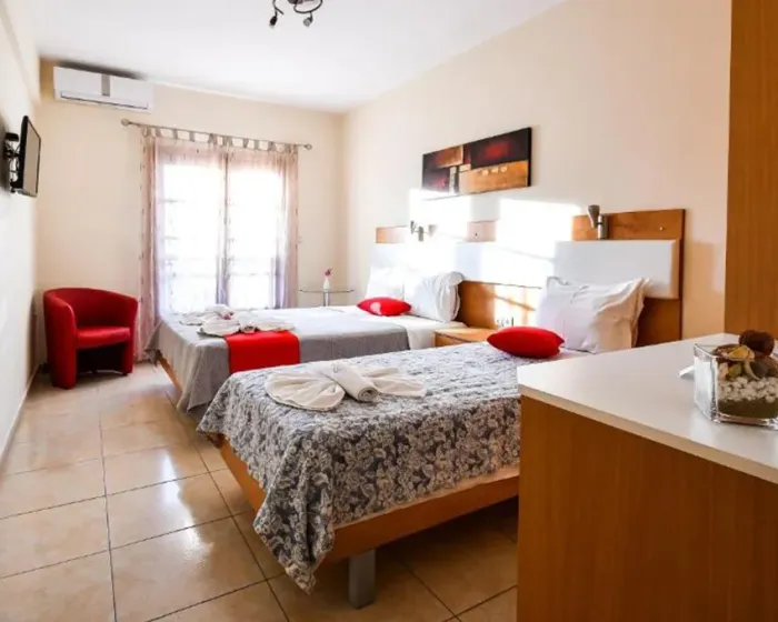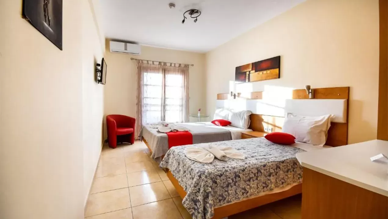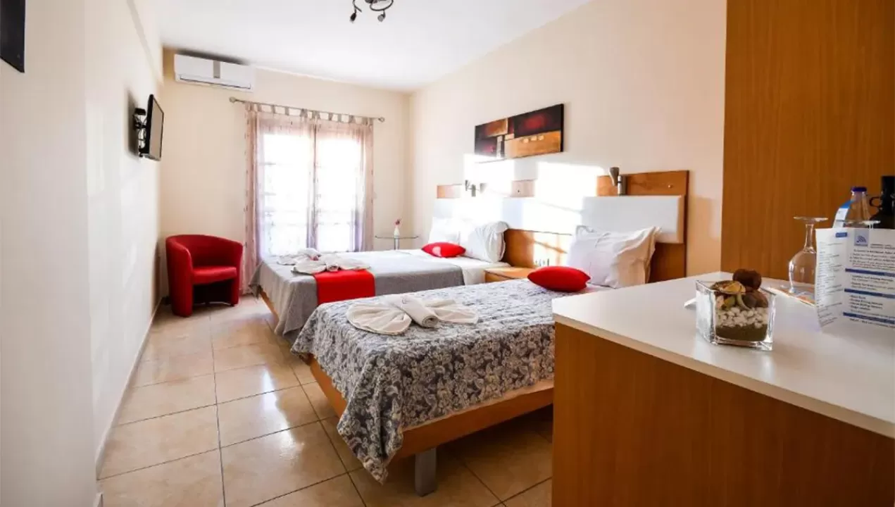 Sve sobe su klimatizovane. Većina soba ima balkon sa pogledom na more. Sobe su opremljene francuskim ili king-size krevetom. Sef je dostupan za čuvanje dragocenosti. Standardna oprema uključuje i frižider. Gosti na raspolaganju imaju TV i besplatan bežični internet. Kupatila su opremljena tušem i fenom za kosu. Hotel nudi porodične sobe i sobe za nepušače.