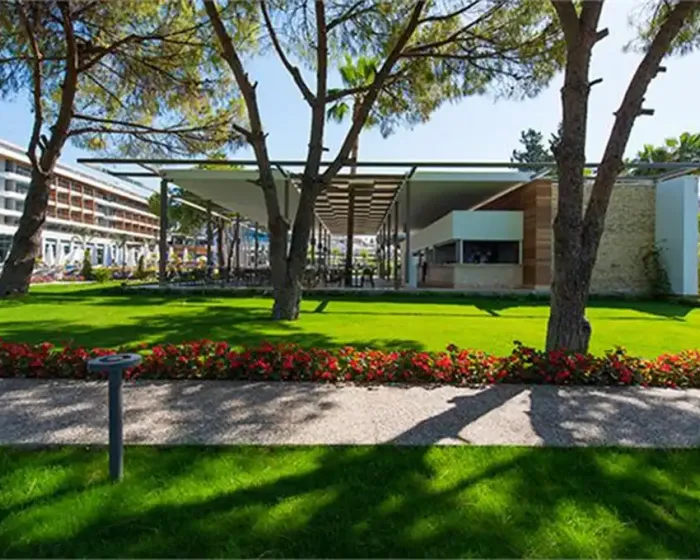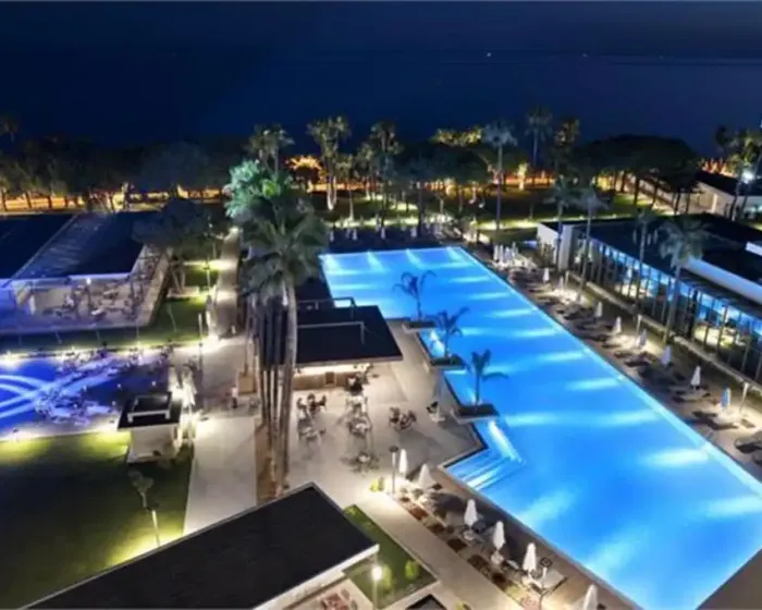 recepcija, osnovni restoran, 3 a la carte restorana (internacionalna i i talijanska kuhinja i riblji restoran, korišćenje usluga restorana jednom u toku boravka besplatno uz obaveznu rezervaciju), 3 bara, SPA centar, poslastičarnica, unutrašnji bazen (radi u zimskom periodu), spoljašnji bazen, dečiji bazen, sala za sastanke kapaciteta do 400 osoba, besplatan wifi internet u celoj regiji hotela, prodavnice, suvenirnica, fotografska radnja, juvelirnica, menjačnica, sauna, aerobik, teniski teren, vaterpolo, teretana, tursko kupatilo, pikado, odbojka na plaži, stoni tenis, animacije, dečiji bazen, dečiji klub namenjen deci uzrasta od 4 do 11.99 godina, igralište, biblioteka i usluge iznajmljivanja vozila; uz doplatu: najam teniskih rekvizita i osvetljenje teniskih terena, motorni sportovi na vodi, masaže, usluge frizerskog salona, pranja i hemijskog čišćenja veša, usluge doktora i dadilje
