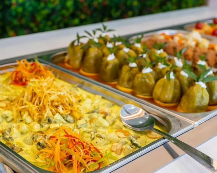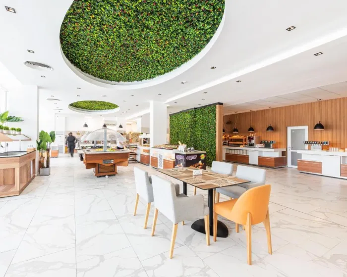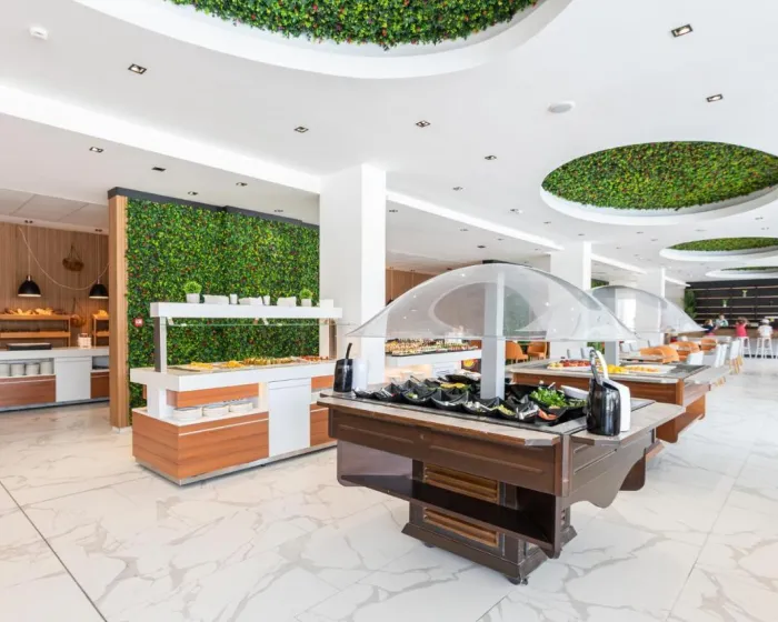 Različite opcije obroka su dostupne, uključujući kafić i bar. Gostima je na raspolaganju restoran za nepušače sa klima uređajem, visokim stolicama i posebnim prostorom za pušače. Opcije ishrane uključuju noćenje sa doručkom, polupansion i all-inclusive. Dostupni su doručak, ručak i večera. Osoblje je takođe srećno da obezbedi obroke za decu.