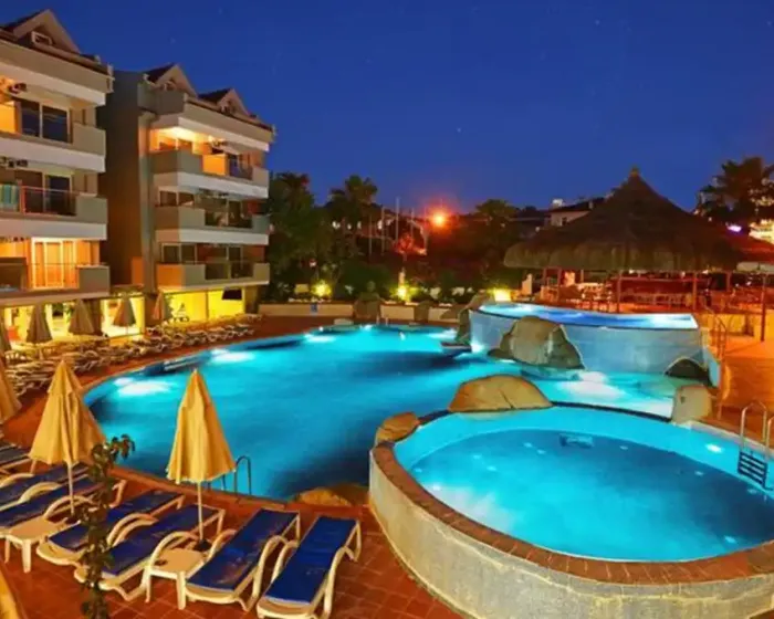 Hotel Begonville Marmaris je udaljen oko 200 metara od gradske peščano-šljunkovite plaže, 1 kilometara od centra grada Marmaris, 90 kilometara od aerodroma Dalaman. Ležaljke i suncobrani pored bazena su besplatni, dok su na plaži uz doplatu. Hotel nema peškire za plažu. Hotel ima ukupno 87 soba.