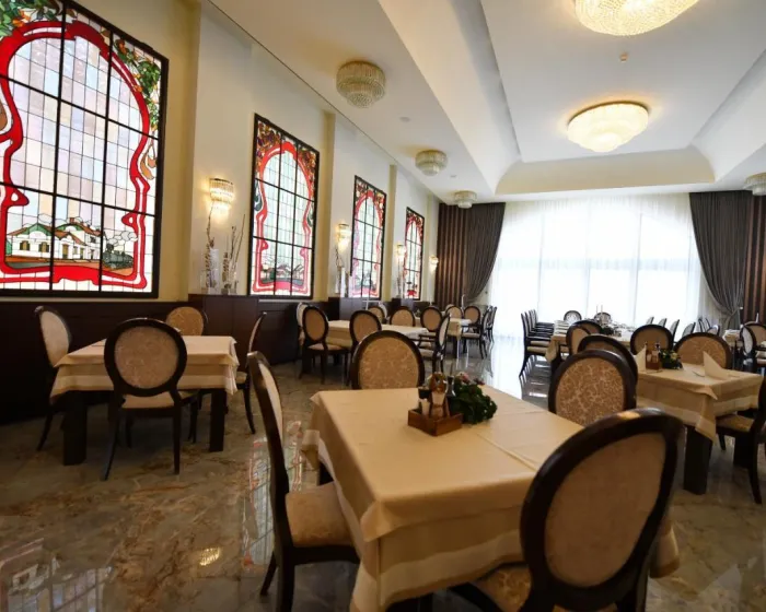 Trpezarija uključuje restoran i bar. Hranljiv doručak se služi svakodnevno.