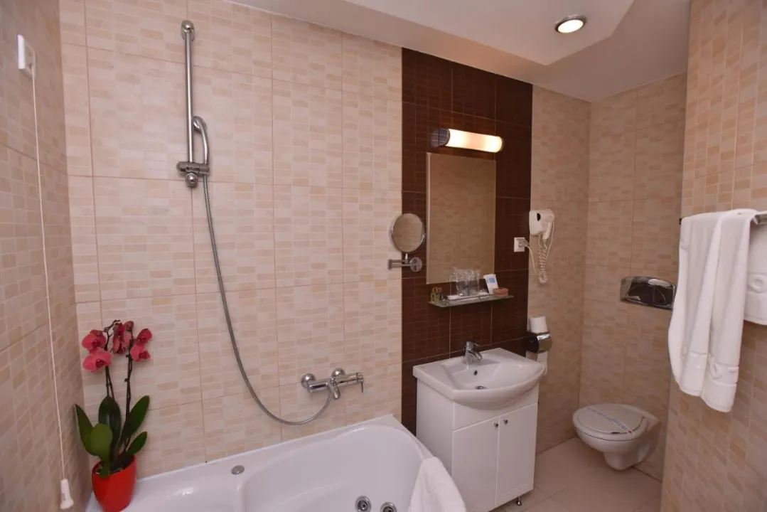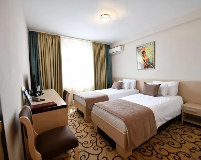 Klima uređaj i centralno grejanje osiguravaju da sobe održavaju prijatnu temperaturu. Sve sobe su sa tepihom i uključuju bračni krevet. Na raspolaganju su i sef i radni sto. Telefon, televizor sa satelitskim/ kablovskim kanalima, alarmni sat i WiFi (bez dodatne naknade) pružaju sve neophodno za udoban odmor. Gosti će takođe pronaći papuče u svojim sobama. Fen za kosu i bade mantili su obezbeđeni u kupatilima, koja uključuju tuš kabinu. Kao posebna pogodnost, kupatila su opremljena kozmetičkim proizvodima i izborom peškira. Hotel ima sobe za nepušače.