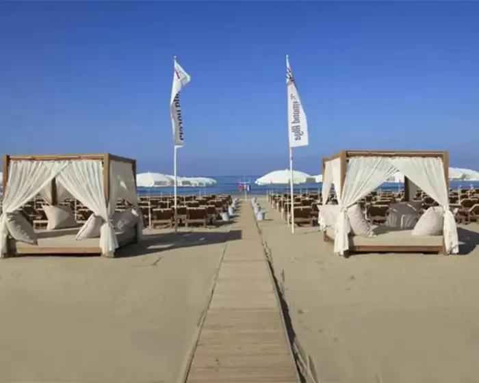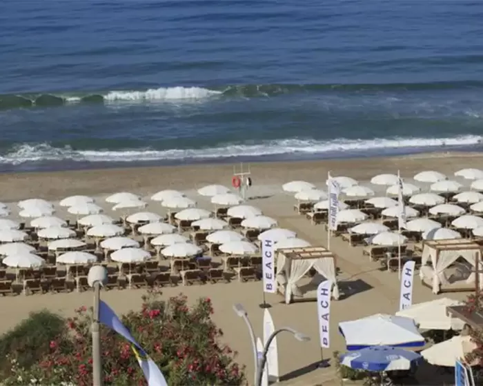 Suncobrani i ležaljke na plaži su besplatni. Peškiri za plažu se dobijaju uz depozit.