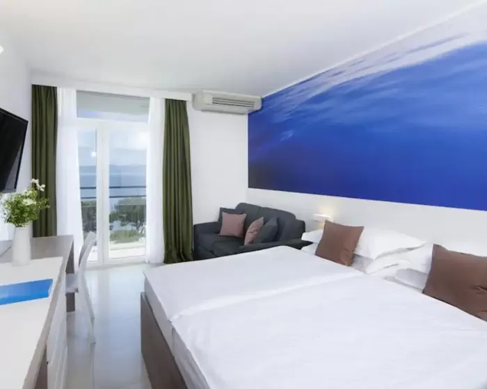 Ukupno soba: Standard soba (Dvokrevetne sobe, ~22 m²), sobe koje nemaju pogled more nemaju ni balkone.U sobama: klima, televizor, mini frižider, tuš, fen (na upit, na recepciji), balkon.