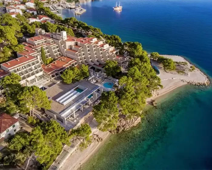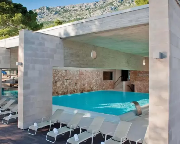 Hotel Bluesun Soline Brela, biser Jadrana, kompetno renoviran za sezonu 2022, nalazi se na peščanoj plaži, i njegova jedinstvena arhitektura zadivljuje svojom prozračnošću i čistim linijama, poštujući prirodni okoliš koji zadaju planina Biokovo i plavetnilo Jadranskog mora.
