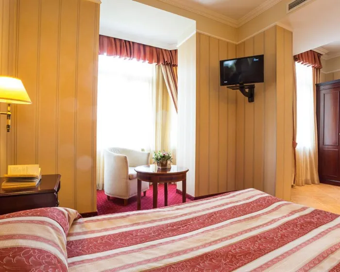 Klima uređaj, centralno grejanje i ventilator obezbeđuju udobne temperature u sobama. Sve sobe su presvučene tepihom i uključuju bračni krevet, krevet king size ili queen size. Dostupne su odvojene spavaće sobe. Dodatni kreveti mogu se zatražiti. Takođe su dostupni sef, mini bar i radni sto. Frižider, mini frižider i aparat za kafu/čaj su standardne karakteristike. Tu je i set za peglanje i presa za pantalone. Direktno biranje telefona, televizor sa satelitskim/kablovskim kanalima, radio i WiFi (bez dodatne naplate) pružaju sve neophodno za udoban odmor. Papuče su uključene. Kupatila su opremljena tušem, kadom i bideom. Fen za kosu, ogledalo za šminkanje i bade mantili su dostupni za svakodnevnu upotrebu. Kao dodatnu pogodnost, kupatila obezbeđuju kozmetičke proizvode. Mogu se rezervisati sobe prilagođene za osobe sa invaliditetom. Hotel ima porodične sobe i sobe za nepušače.