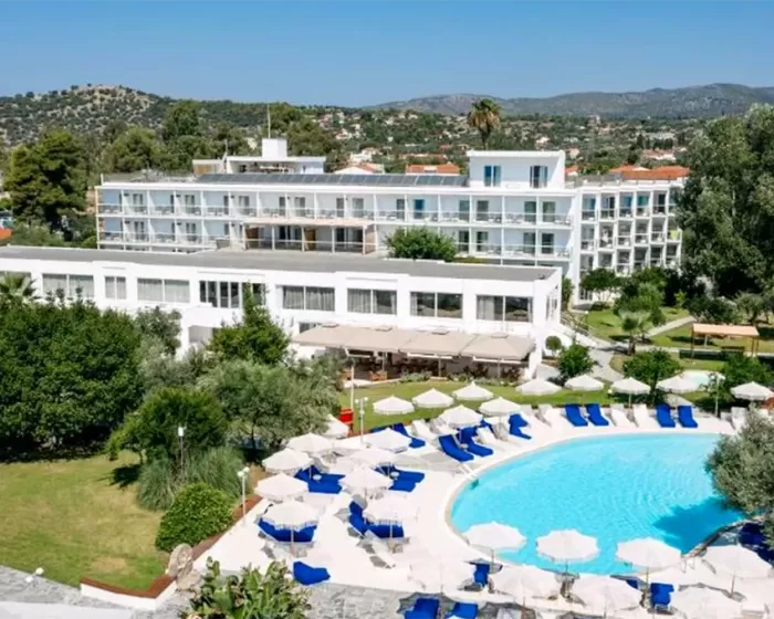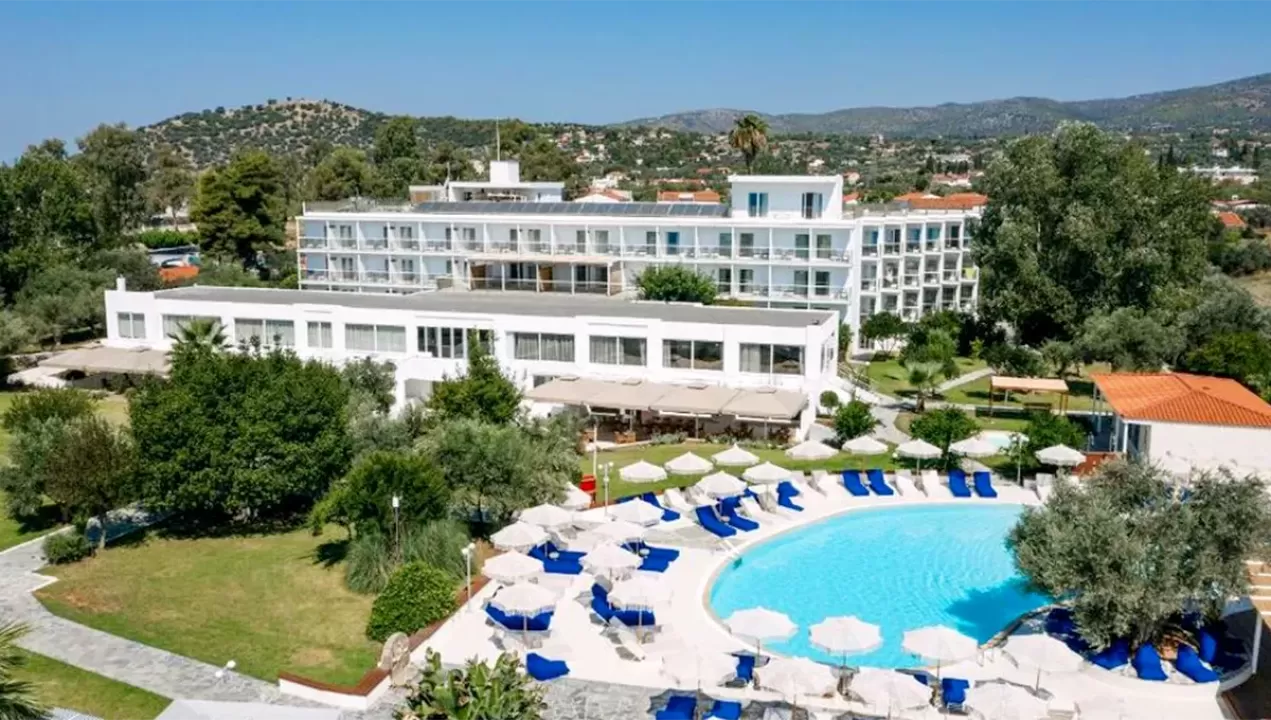 Hotel Brown Beach Eretria je porodični all inclusive koncept hotel, koji se nalazi na uredjenoj plaži, nedaleko od grada Eretrije na Eviji. U svom sastavu ima sobe koje mogu isključivo ugostiti dve odrasle osobe i jedno dete do 11.99 godina starosti. Pored otvorenog bazena za animaciju gostiju su na raspolaganju sportski tereni, kao i spa centar.