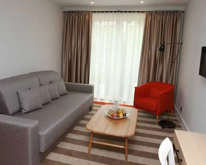 * Maksimalan broj osoba u apartmanu - 3 odrasle ili 2 odrasle i dvoje dece do 11.99 godina.Sve sobe nude TV sa kablovskim kanalima, centralnu klimatizaciju i direktnu telefonsku liniju. Kupatila su opremljena tuš kabinom i fenom za kosu. Sobe takođe sadrže sef i mini-bar.