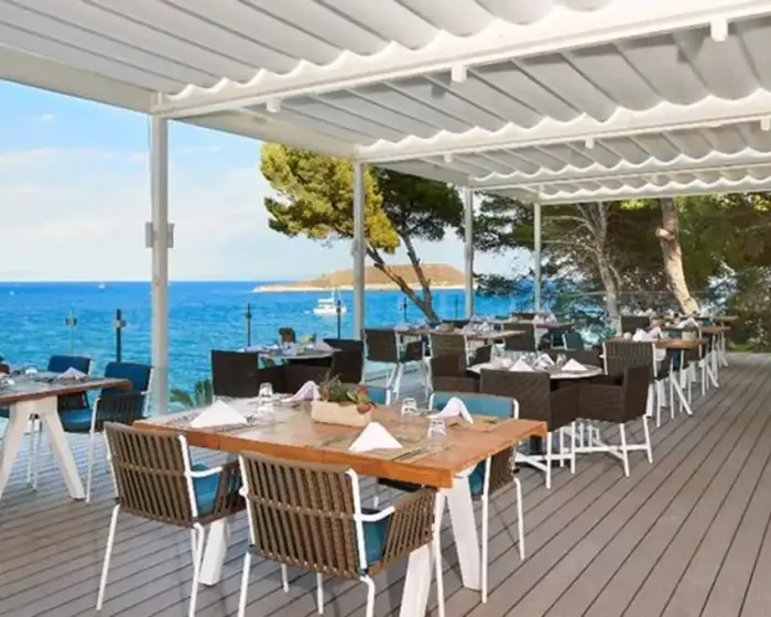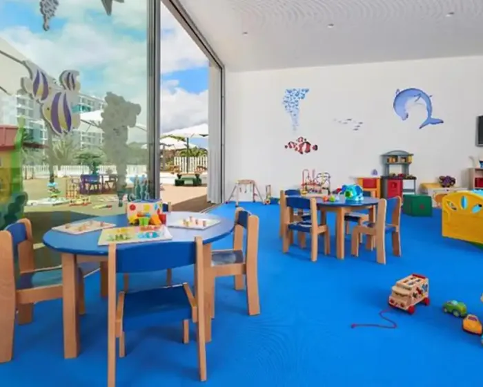 recepcija, restoran, kafeterija, bar pored bazena, lounge bar, nekoliko bazena (otvoreni bazen u obliku lagune sa direktnim izlazom na plažu, bazen za decu, zatvoreni bazen), suncobrani i ležaljke pored bazena, servis za iznajmljivanje peškira za bazen, wifi internet u zajedničkim prostorijama hotela i u sobama, animacija za decu i odrasle, spa centar, teretana, mini klub za decu.