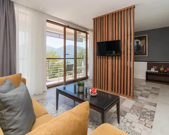 junior suite - površina sobe je najmanje 35 m² ,balkon sa pogledom na more ili brdo, uradjeni u toplim materijalima visokog kvaliteta, poseduju opremljena kupatila sa tuš kabinama, svim pratećim sadržajima. Junior suiti na poslednjem spratu poseduju galerije sa još jednim ležajem za jednu osobu. Ostali sadržaji su radni sto, garderober/orman, mini bar , TV, Satelitski kanali, WI-FI Internetapartmani - površina sobe je najmanje 45 m² ,balkon sa pogledom na more ili brdo, uradjeni u toplim materijalima visokog kvaliteta, poseduju opremljena kupatila sa tuš kabinama, svim pratećim sadržajima. Junior suiti na poslednjem spratu poseduju galerije sa još jednim ležajem za jednu osobu. Ostali sadržaji su radni sto, garderober/orman, mini bar , TV, Satelitski kanali, WI-FI Internet
