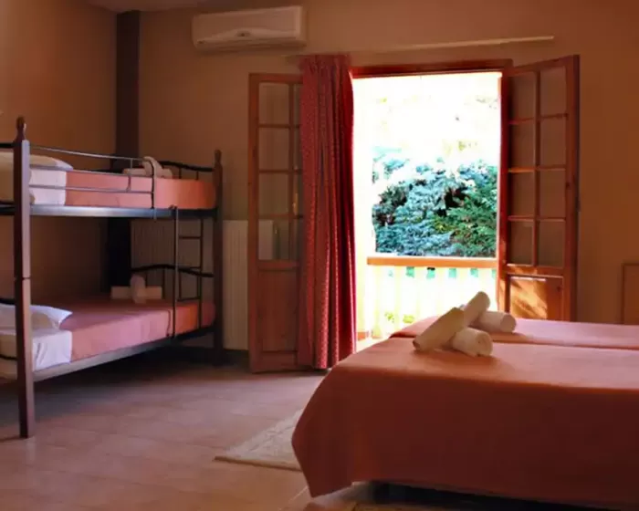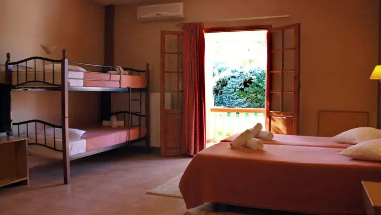 Maksimalan broj osoba u sobi je odredjen tabelom i stavkom \"Max Osoba\".Poseduje 22 sobe: Standard soba GV/SV - Dvokrevetne sobe sa pogledom na vrt / more (~14-18 m²), Standard soba GV/SV - Trokrevetne sobe sa pogledom na vrt / more (~25 m²), Četvorokrevetna soba GV/SV - Četvorokrevetne sobe sa pogledom na vrt / more (~28 m²).U sobama: klima, televizor, SAT TV (ruski kanal), tuš, fen (na upit, na recepciji), Wi-Fi internet, frižider, opremljen balkon.Double Room GV/SV - 2 odvojena ležaja (spojena).Triple Room GV/SV - 3 odvojena ležaja.Quadruple Room GV/SV - 4 odvojena ležaja.Studio GV - prizemlje (Ground floor), 2 odvojena ležaja, BunkBed.