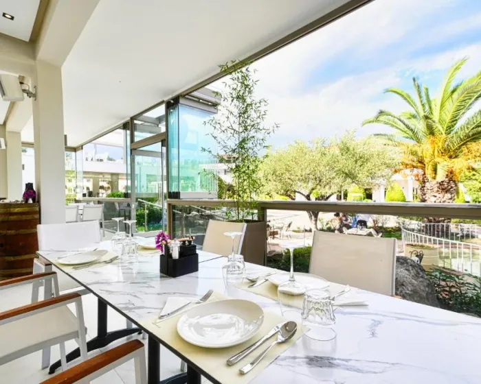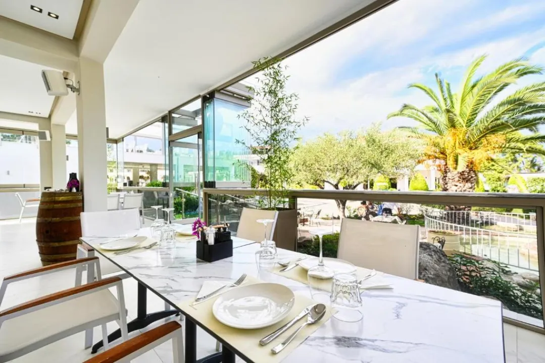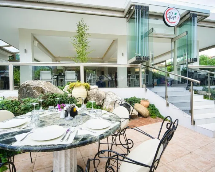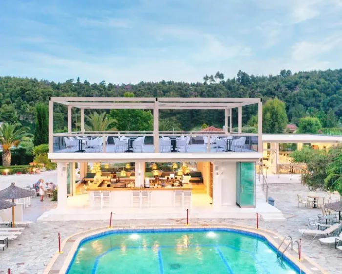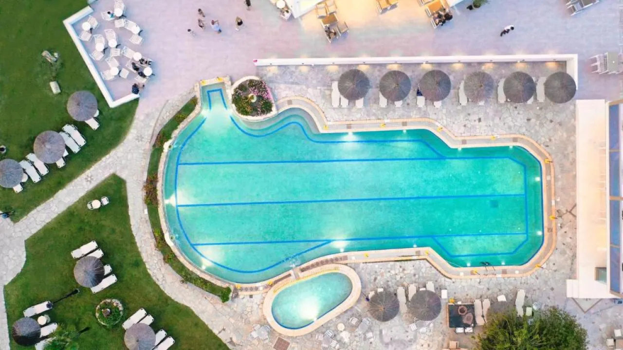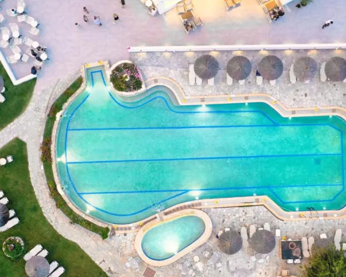 recepcija, restoran (vegetarijanski meni dostupan), glavni bar, bar pored bazena, dva otvorena bazena, dva dečija bazena, dečiji klub i animacija, tri dečija igrališta, protor za roštilj, sportski tereni, tereni za tenis,