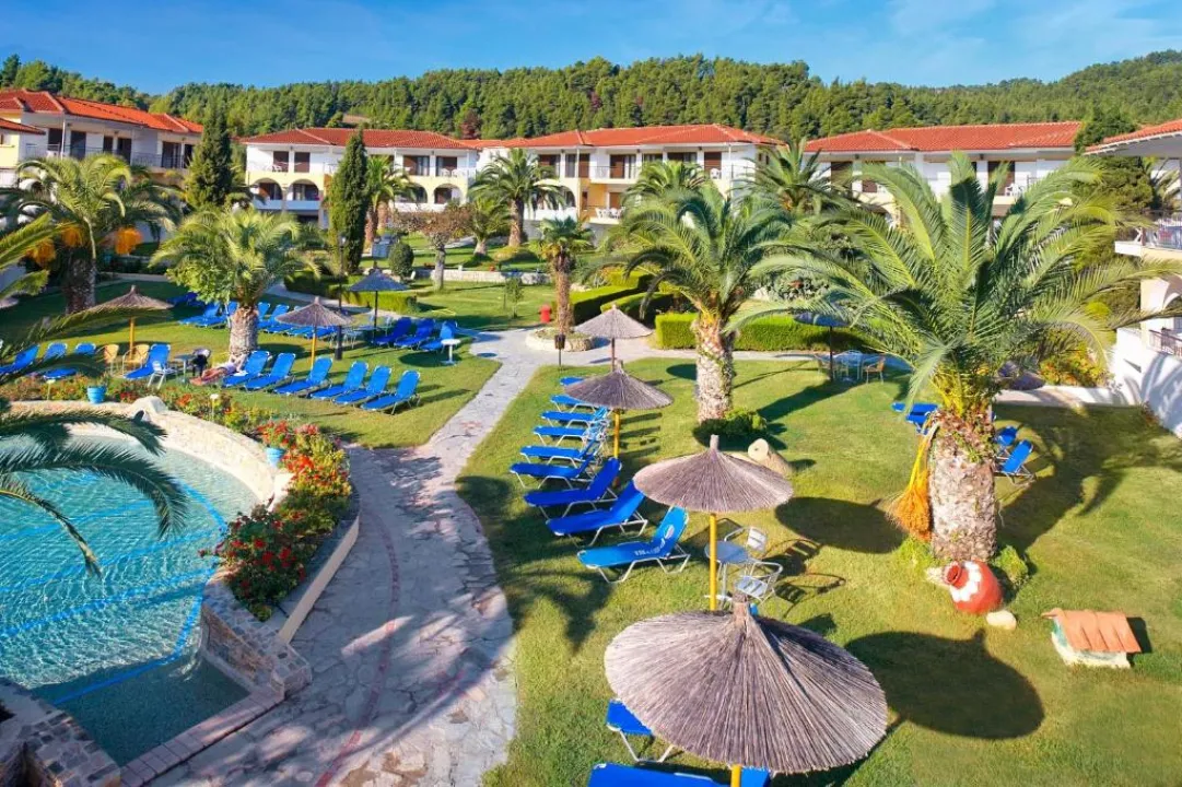 Hotel Chrousso Village Paliouri se nalazi na dnu prvog prsta Kasandre, nedaleko od popularnih plaža Xenia i Paljuri, od kojih je udaljen oko 500 metara. Oivičen borovom šumom i izgradjen u tradicionalnom grčkom mediteranskom stilu na 40 hekatara zelenila, svojim gostima garantuje kvalitetan porodičan odmor, daleko od vreve obližnjih Pefkohorija i Haniotija. Hotel Chrousso Village Paliouri se sastoji iz glavne zgrade i petnaest bungalov zgrada, rasporedjenih oko prostora za animaciju gostiju i dva bazena. Kako se nalazi iznad popularne Xenia plaže na kojoj nema svoje ležaljke, set istih se doplaćuje, na licu mesta. Preporuka agencije. Usluga polupansion plus: doručak i večera švedski sto i besplatni napici tokom obroka: sokovi, voda, točeno pivo i vino.