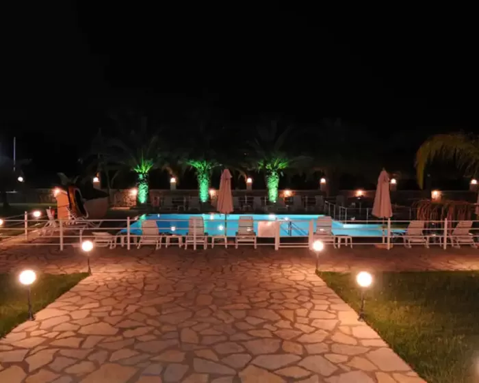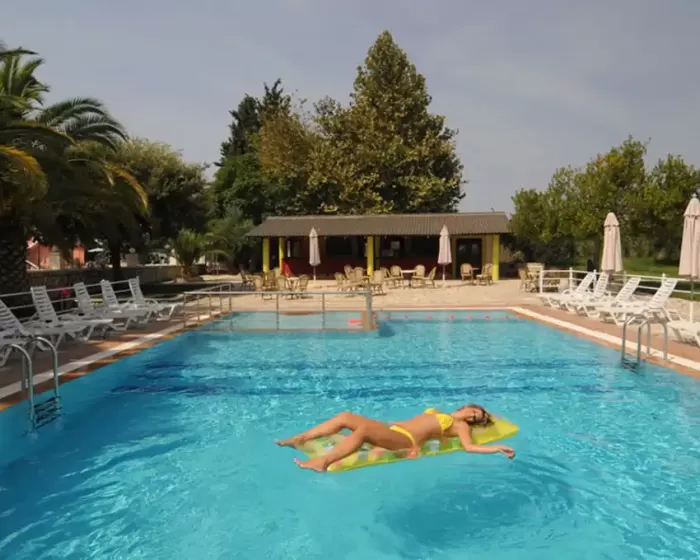 Hotel Cleopatra Beach Kastrosikia se nalazi na oko 150 metara udaljenosti od prelepe peščane plaže Kastrosikia, koja je nagradjena plavom zastavicom. Hotel je starijeg datuma, ali je kompletno je renoviran 2007. godine. Doručak se služi u hotelu, a večera se može uplatiti u obližnjoj taverni kraj mora.