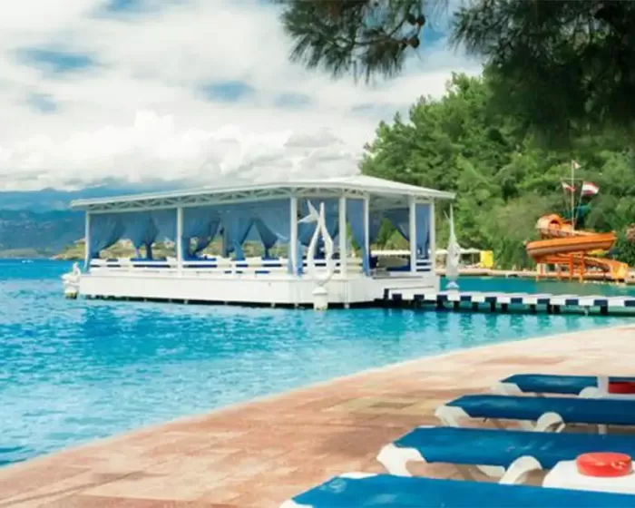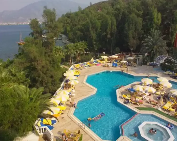 Hotel Club Letoonia Fetije Turska se nalazi na poluostrvu sa tri sopstvene plaže, na oko 4 kilometara udaljenosti od Fetija i na oko 57 kilometara od aerodroma Dalaman. Hotel ima 620 soba rasporedjenih u glavnoj i zgradi i bungalovima. Renoviran je 2013-2014. godine i prostire se na površini od 165.000 m².