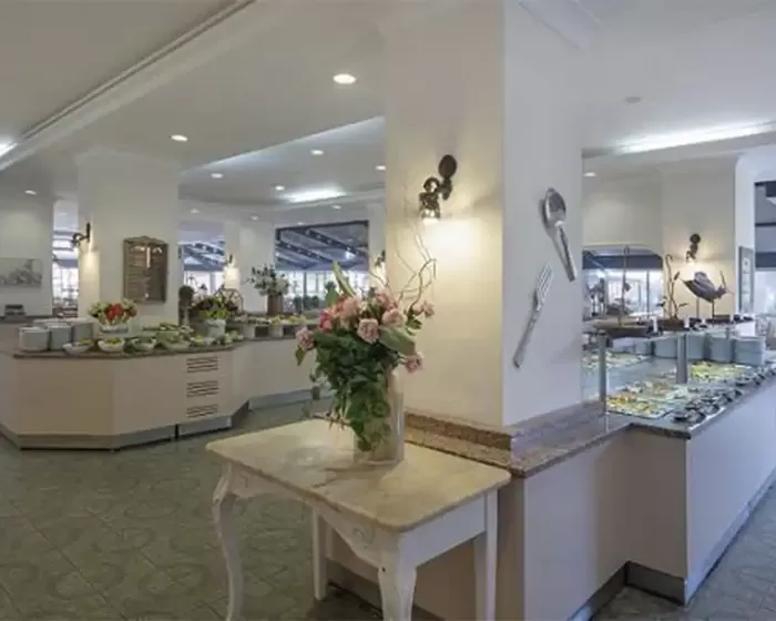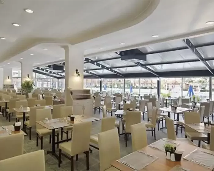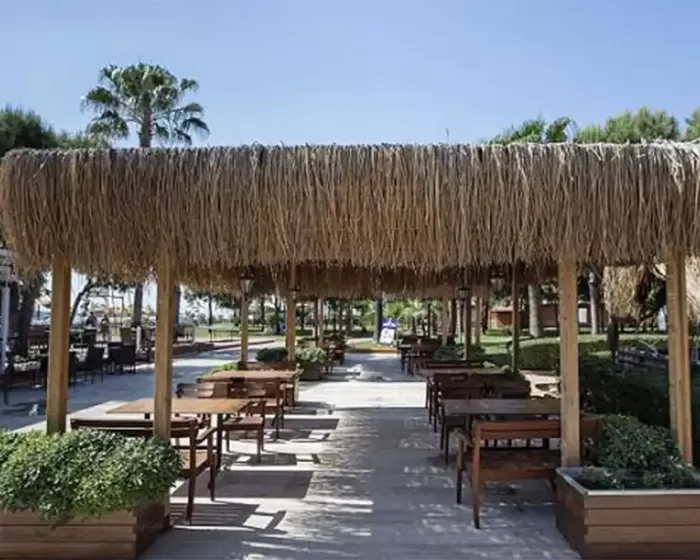 Glavni restoran na bazi otvorenog bufea - samoposluživanje (švedski sto), A la Carte restoran, bar na plaži , bar pored bazena, lobi bar. Posebno se plaća prema pravilima hotela: lekar, usluga pranja veša i hemijsko čišćenje, telefon, fax, internet, frizer, šoping, rent-a-car. Bežični internet je besplatan u lobiju.Otvoreni bazeni za decu i odrasle, tobogani, fitnes, tursko kupatilo, sauna, stoni tenis, odbojka na plaži, košarka, teniski tereni. Zabavni program tokom dana, takmičenja na plaži i pored bazena, specijalni večernji šou program, mini klub za decu od 4-12 godina, igraonica, mini diskoteka u večernjim satima. Posebno se plaća prema pravilima hotela: sportovi na vodi, masaža, SPA i wellness, mini golf, osvetljenje za teniske terene, bilijar, kompjuterske igre.