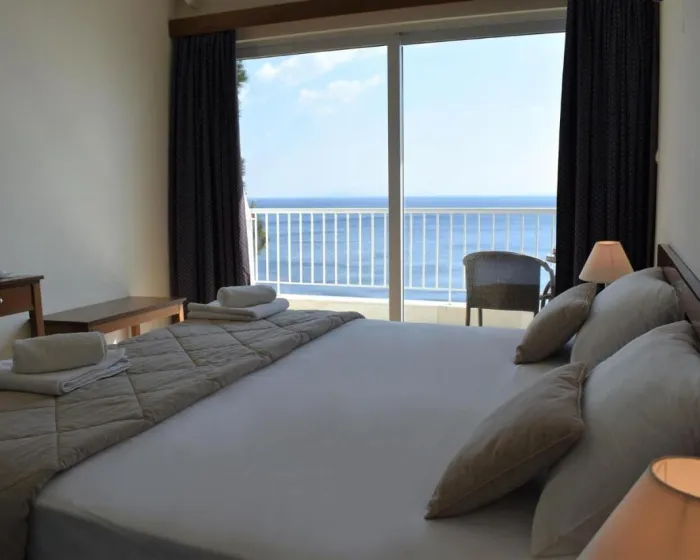 Centralno klima osigurava da sobe održe ugodnu temperaturu. Većina jedinica ima pogled na more. Sobe imaju bračni krevet, krevet za jednu osobu, francuski ležaj ili sofu. Dodatni kreveti mogu biti zatraženi. Takođe su dostupni sef i minibar. TV i WiFi pružaju sve neophodno za udoban odmor. Fen za kosu i telefon su na raspolaganju u kupatilima za svakodnevnu upotrebu. Hotel ima porodične sobe i sobe za nepušače.