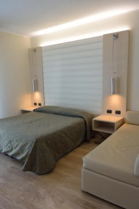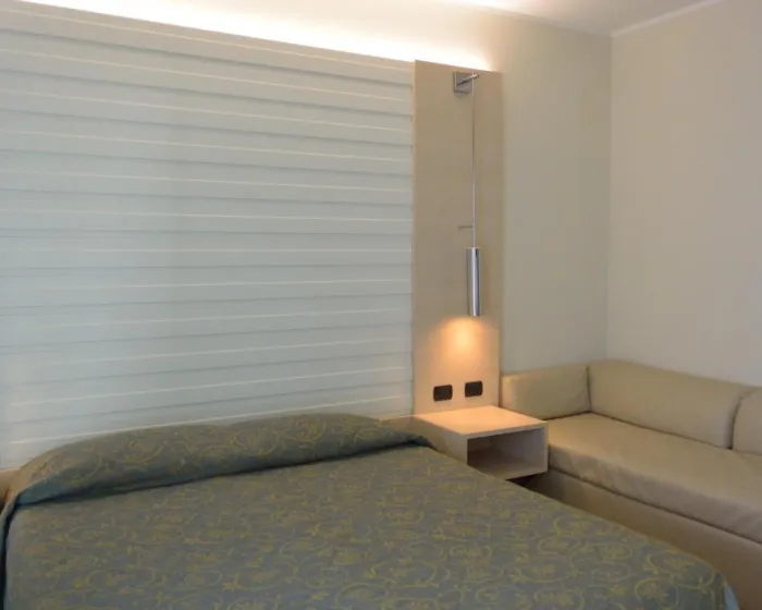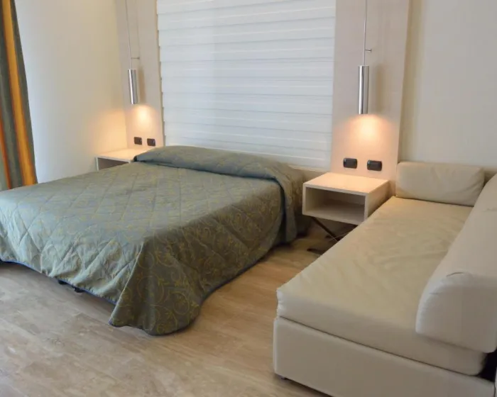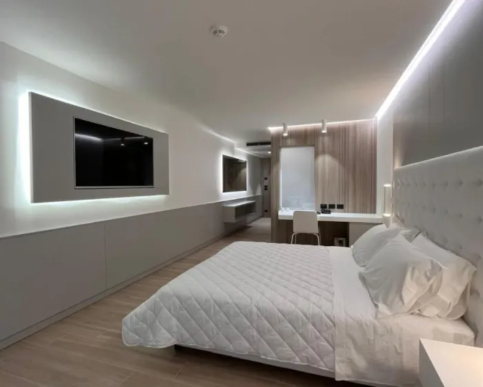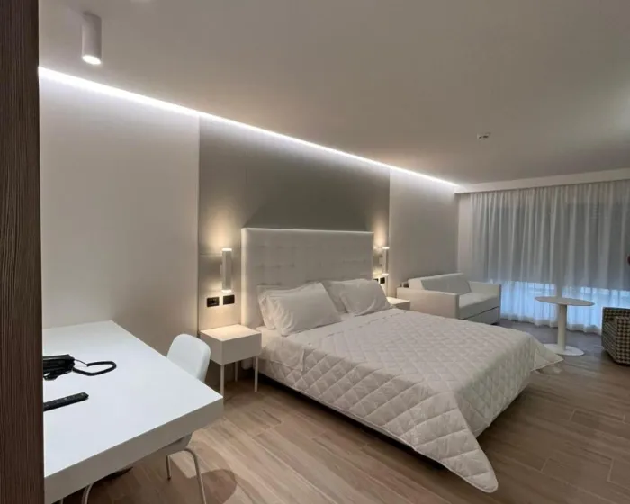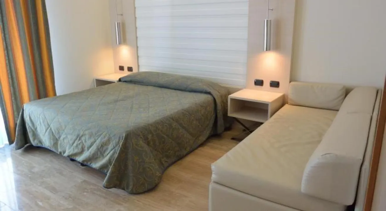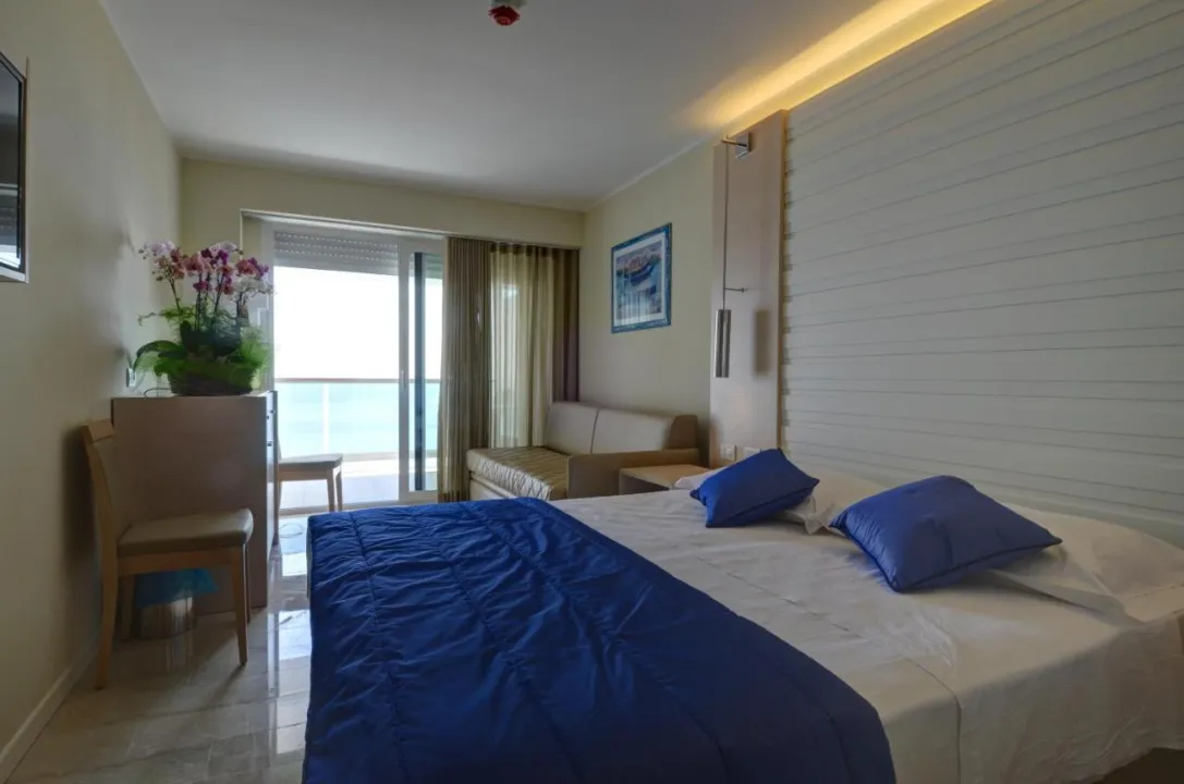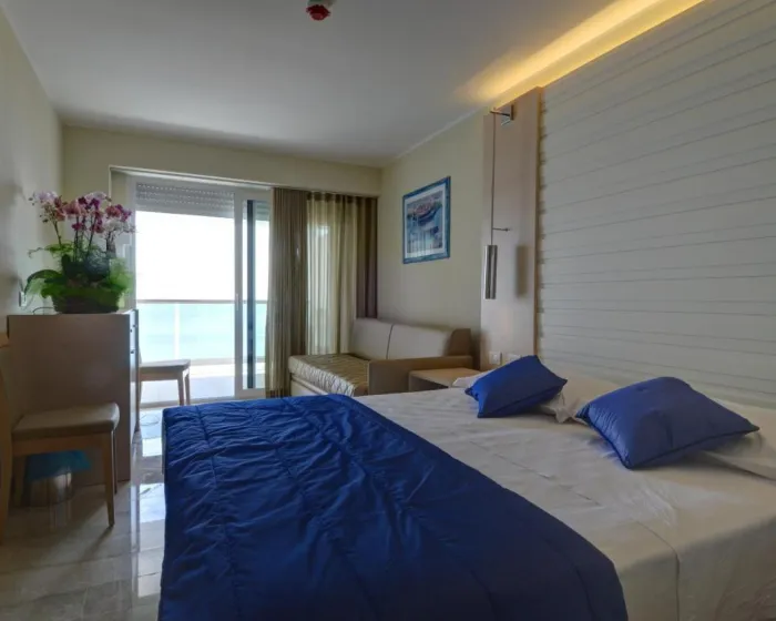 klima uređaj i centralno grejanje osiguravaju da sobe održe udobnu temperaturu. Gosti mogu uživati u pogledu na more sa balkona ili terase. Sobe imaju bračni krevet i sofu na razvlačenje. Takođe su dostupni sef i mini bar. Telefon, televizor sa satelitskim i pay-per-view kanalima i WiFi (bez dodatne naplate) pružaju sve neophodno za udoban odmor. Fen za kosu i telefon dostupni su u kupatilima, koja uključuju tuš i kadu. Kao poseban dodatak, kupatila su opremljena kozmetičkim proizvodima i izborom peškira. Hotel ima porodične sobe i sobe za nepušače.