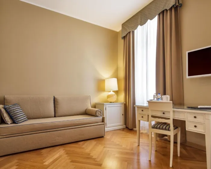 Klima uređaj i centralno grejanje osiguravaju da sobe održavaju udobne temperature. Balkon je među standardnim sadržajima nekih soba. Sobe imaju bračni krevet i sofu na razvlačenje. Kreveti za decu i dodatni kreveti mogu se zatražiti za mlađe goste. Sef, minibar i radni sto su takođe dostupni. Gosti će takođe naći mini frižider među standardnim sadržajima. Postavljen je set za peglanje radi gostove praktičnosti. Takođe su obezbeđeni telefon, satelitska televizija i WiFi (bez dodatne naknade). Papuče su uključene. Kupatila su opremljena tušem, kadom, đakuzijem i bideom. Fen za kosu i telefon su dostupni za svakodnevnu upotrebu. Kao dodatna pogodnost, kupatila pružaju kozmetičke proizvode. Prilagođene za kolica sobe mogu se rezervisati. Hotel ima porodične sobe, sobe za nepušače i sobe za pušače.