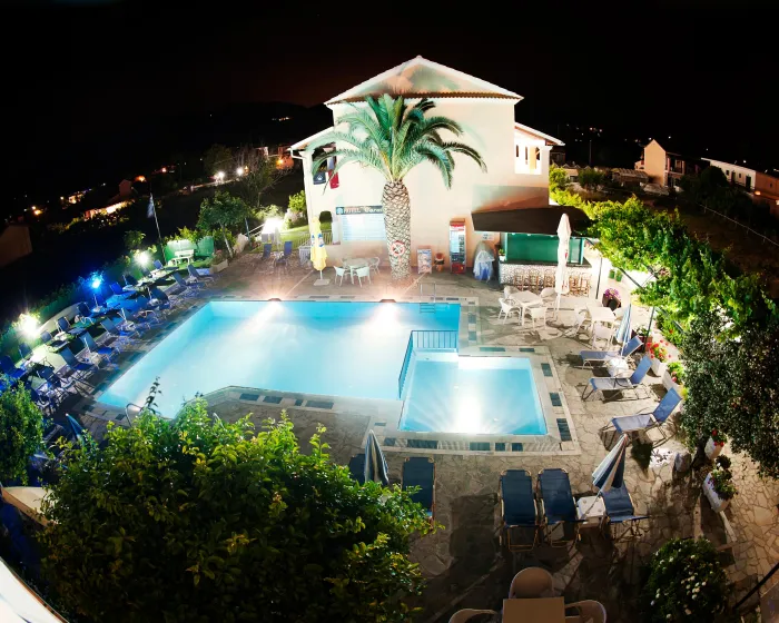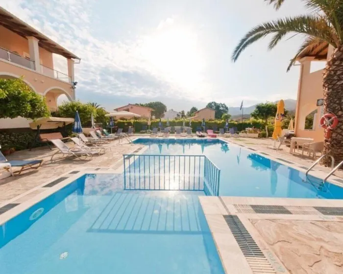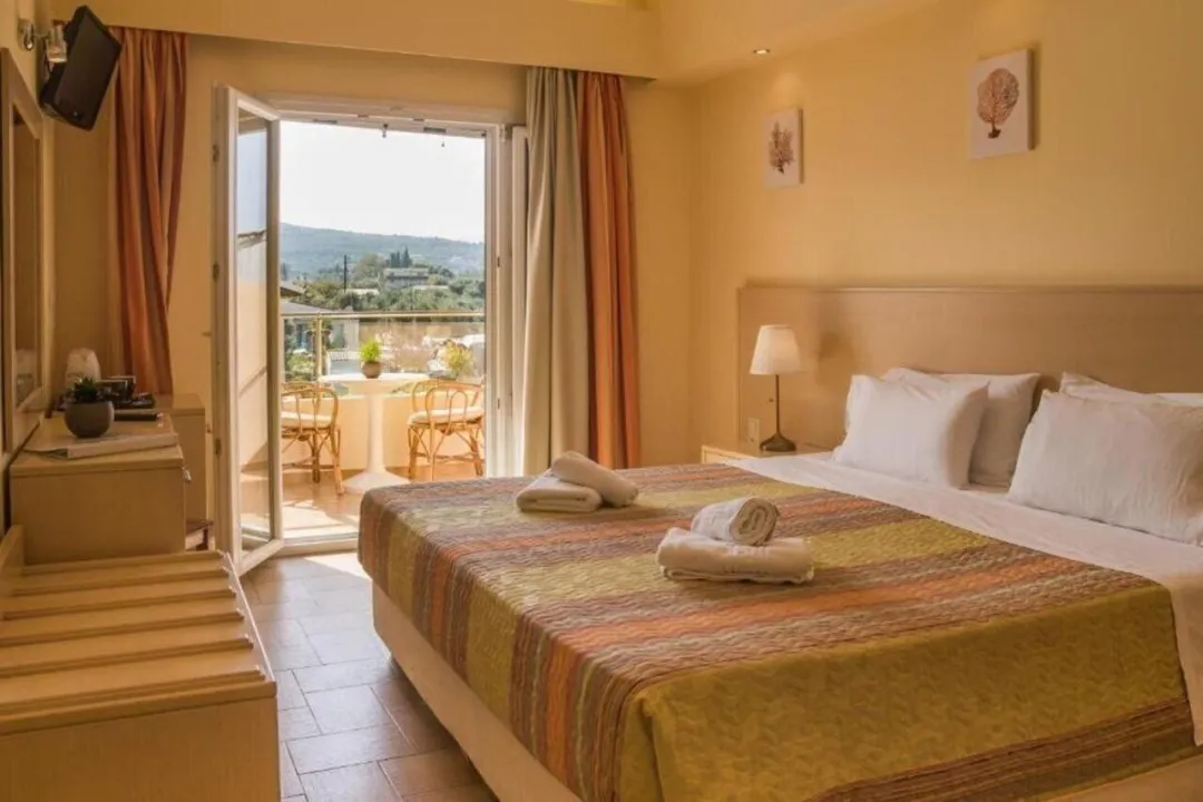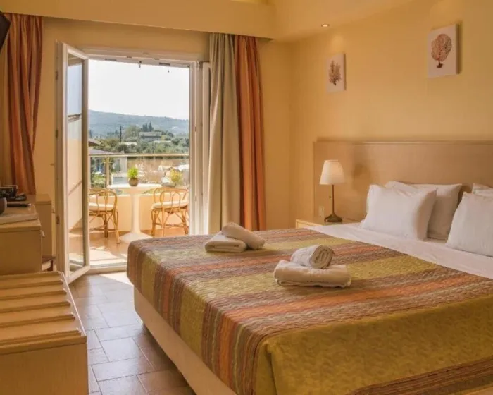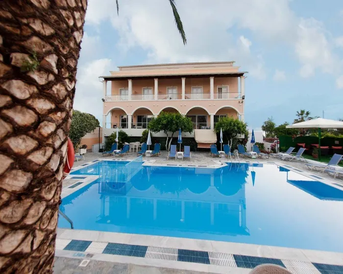 Hotel se nalazi na severu Smaragdnog ostrva Krf i 32 km od grada Krf. Hotel je idealno lociran direktno uz more, između letovališta Rode (500 m) i Aharavija (1.5 km). Roda je mala ribarsko selo koje je zadržalo svoj grčki karakter i nudi različite prodavnice, barove i restorane. Vodeni sportovi i iznajmljivanje čamaca su dostupni na obali. Hotel je udaljen 35 km od aerodroma.