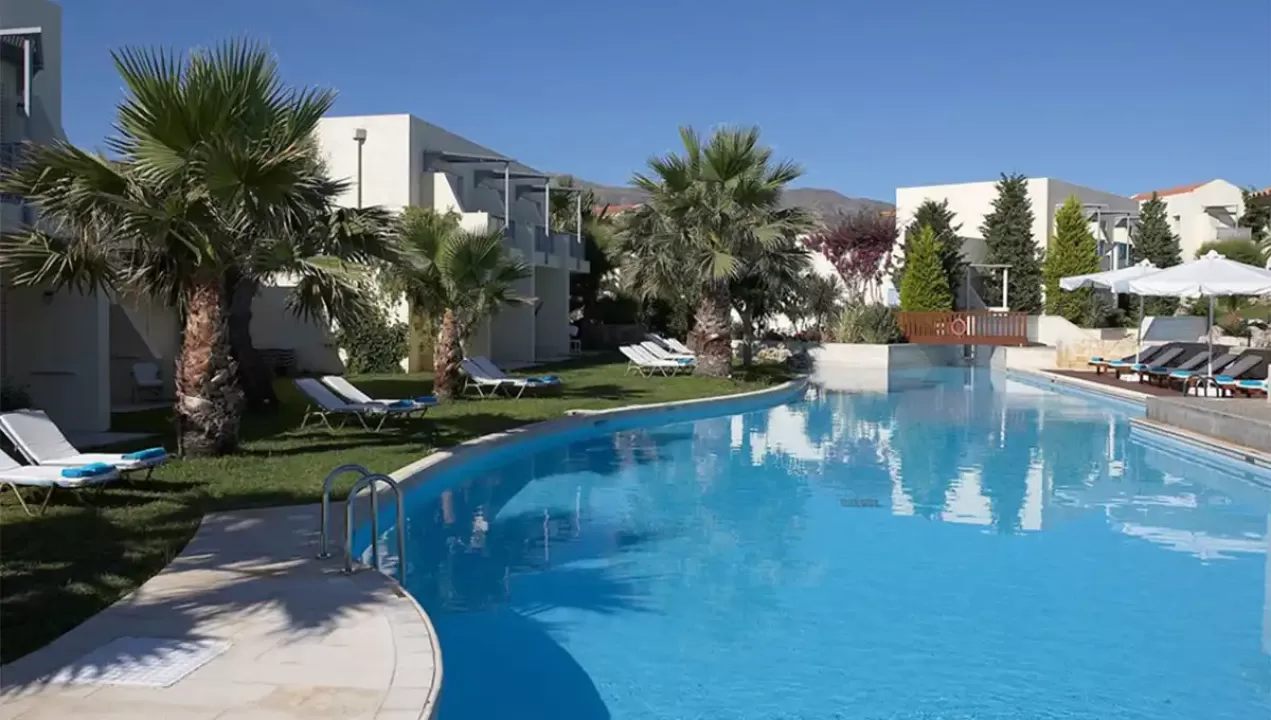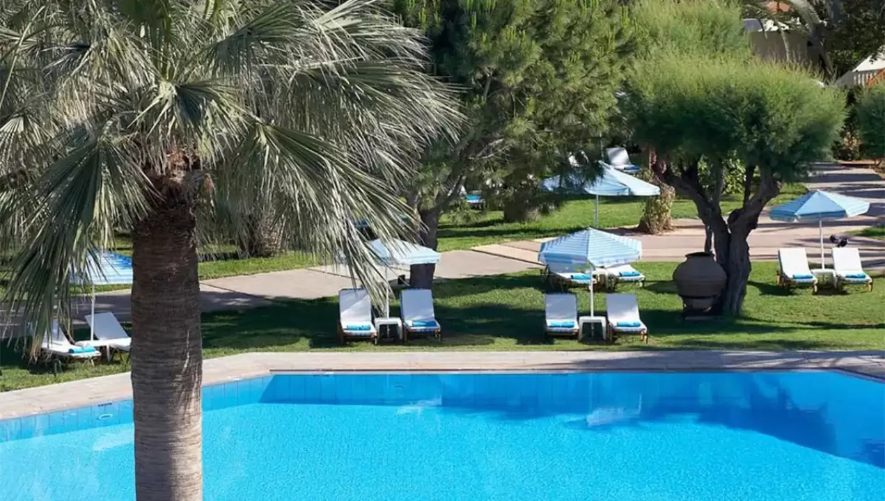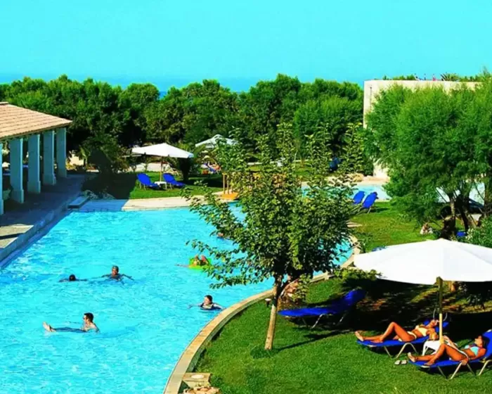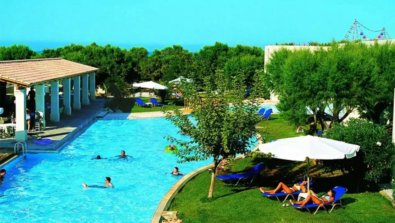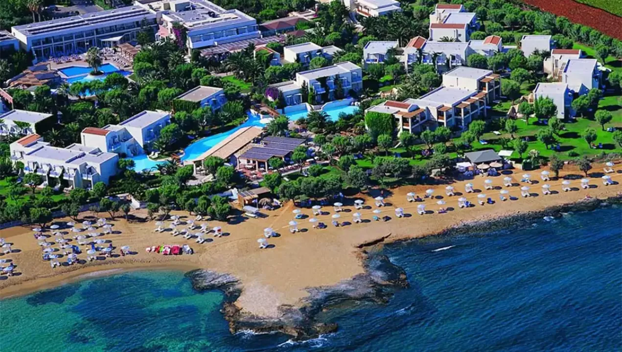 Hotel Cretan Malia Park Krit odlikuje predivna bašta, peščana plaža, raskošne sobe, restorani, barovi, sportski tereni, bazen, dečiji klub, prodavnice, kao i kvalitetan servis.