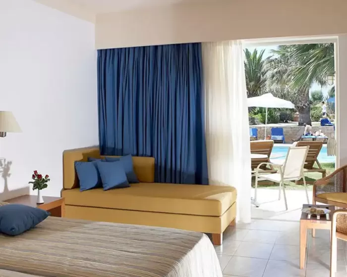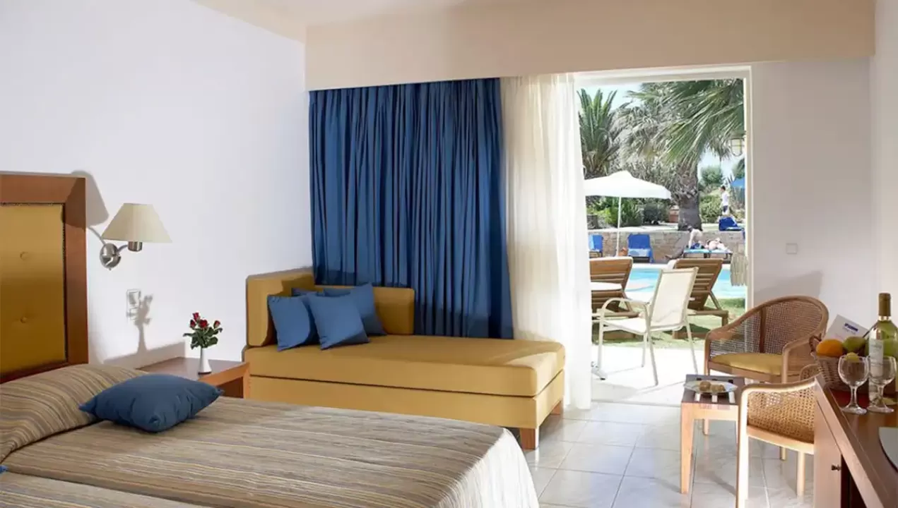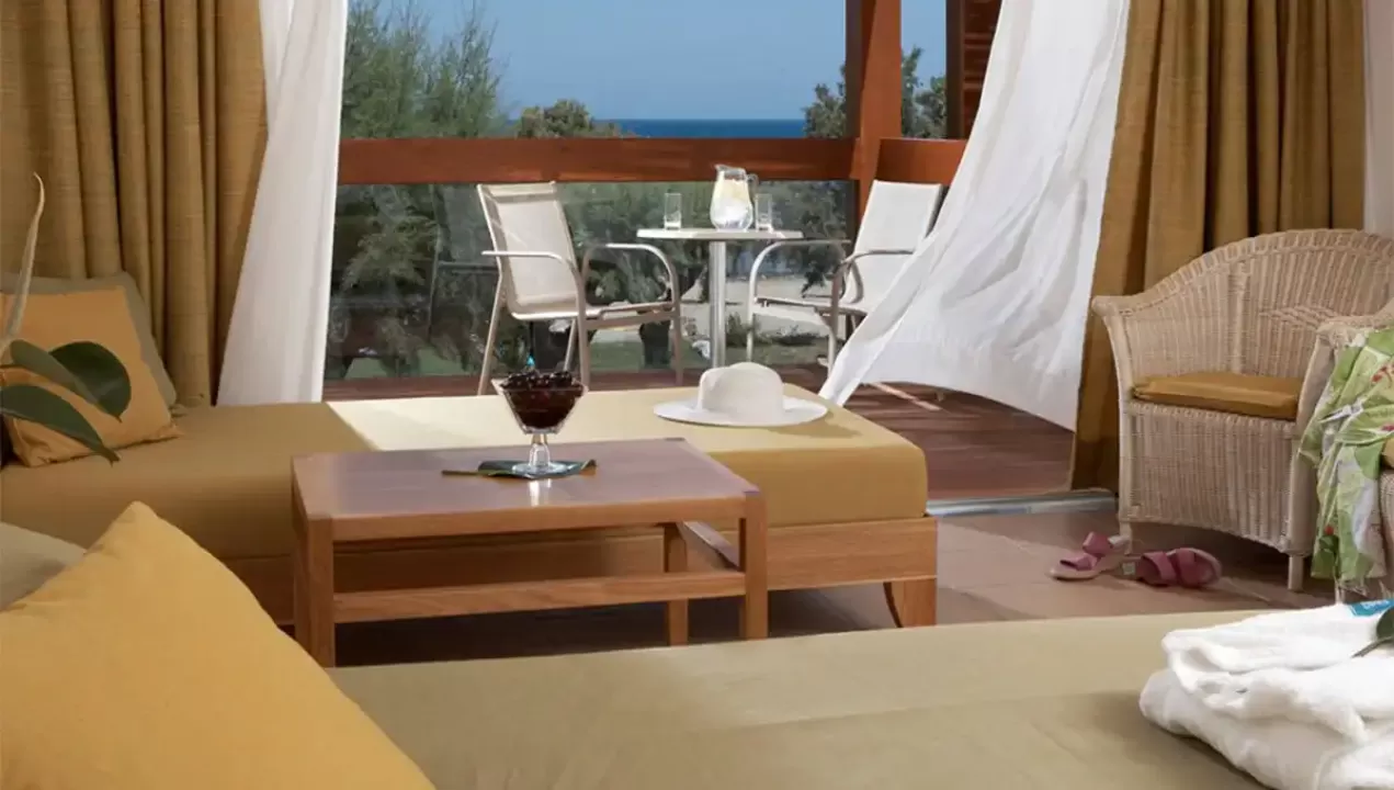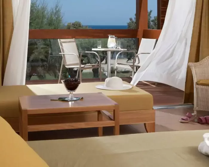 Ukupno 204 sobe: Dvokrevetne sobe, pogled vrt (Standard soba GV) (~24 m²), BungalowsGV/PV/PF/SF/SV  (~26 m²), Junior Bungalow suites SV (~33 m²), Deluxe suites SV (~64 m²).U sobama: klima-uredjaj, mini frižider, telefon, wifi, SAT-TV, LCD, muzički kanali, set za kafu/čaj, papuče, el. sef, kada/tuš, fen, kozmetičko ogledalo, balkon/terasa.Standard soba - dve fotelje na razvlačenje, balkon. Sobe su u glavnoj zgradi.Bungalow - spavaća soba, dnevni boravak sa sofom i stočić za kafu, sto, balkon ili terasa.Junior Bungalow suite sea View - pogled na more, spavaća soba, dnevni boravak, sofa.Deluxe suite sea View - spavaća soba, dnevni boravak, garderober, salon sa sofom, radni sto, kupatilo - djakuzi.