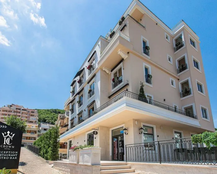 Hotel Crown se nalazi u Budvi (Golubovina), na deset minuta hoda od TQ Plaza i Trg Između Crkava. Ovaj hotel je udaljen 21,1 kilometara od Kotorskog zaliva i 22,2 kilometara od Porto Montenegra.