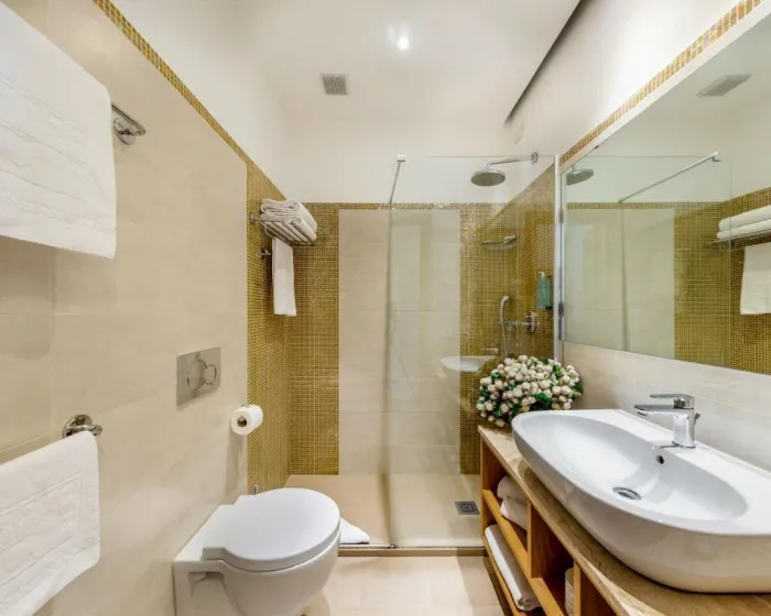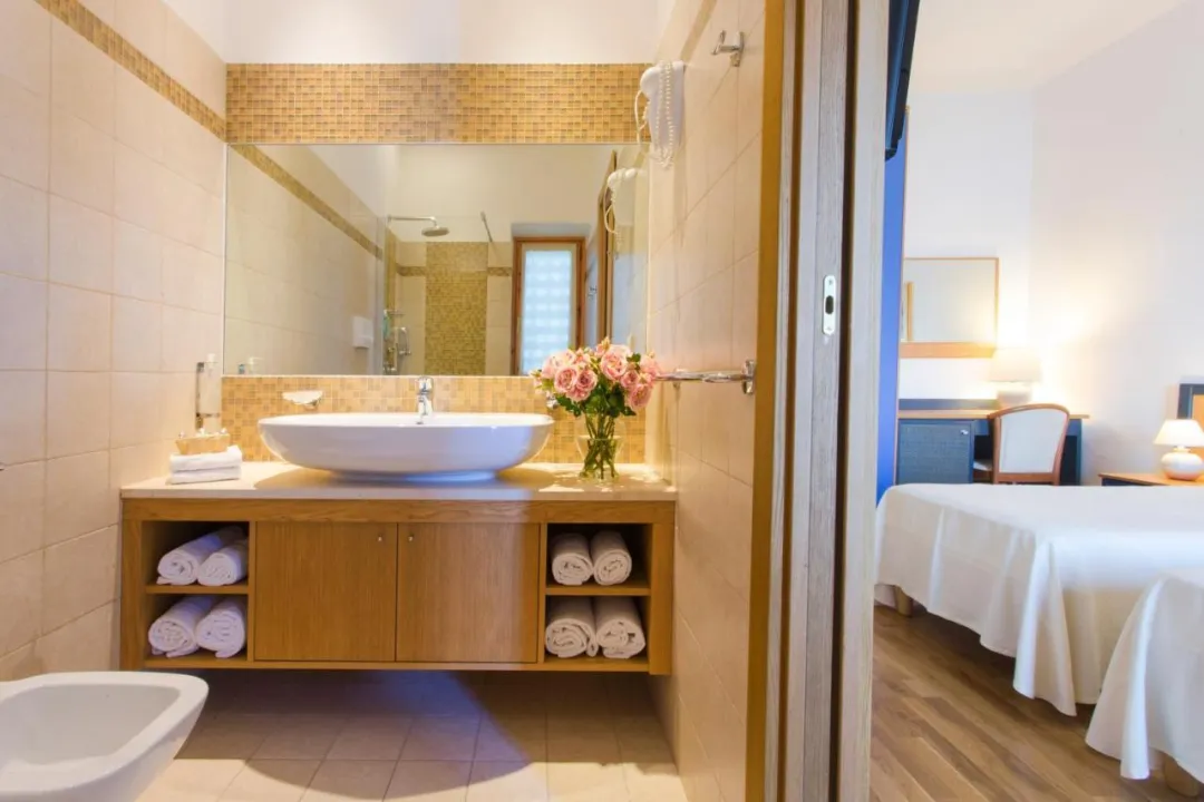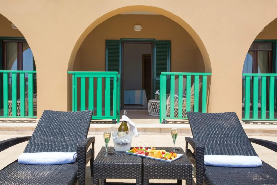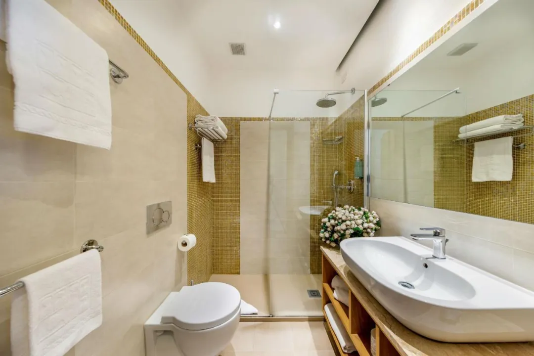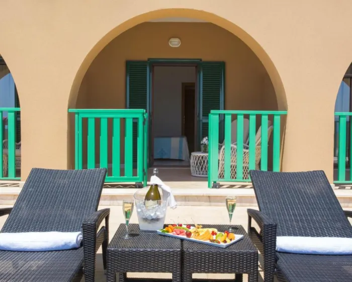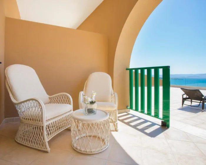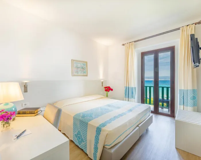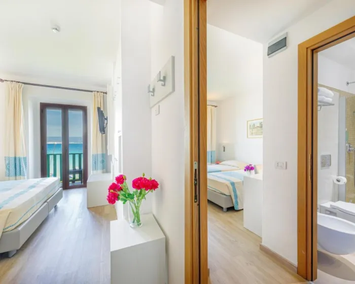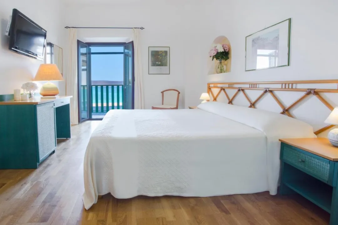 Klima uređaj i centralno grejanje obezbeđuju udobnu temperaturu u sobama. Gosti mogu opustiti i uživati u pogledu na more sa balkona ili privatne terase nekih soba. Sobe imaju bračni krevet i sofu. Kreveti za decu i pomoćni kreveti mogu se zatražiti za mlađe goste. Takođe su dostupni sef, minibar i radni sto. Pegla za pantalone je obezbeđena radi udobnosti gostiju. Takođe su obezbeđeni telefon, TV i WiFi (bez dodatne naplate). Kupatila su opremljena tušem, kadom i bideom. Fen za kosu i telefon su dostupni za svakodnevnu upotrebu. Za dodatnu udobnost u kupatilima, gostima se nude kozmetički proizvodi. Hotel ima porodične sobe i sobe za nepušače.