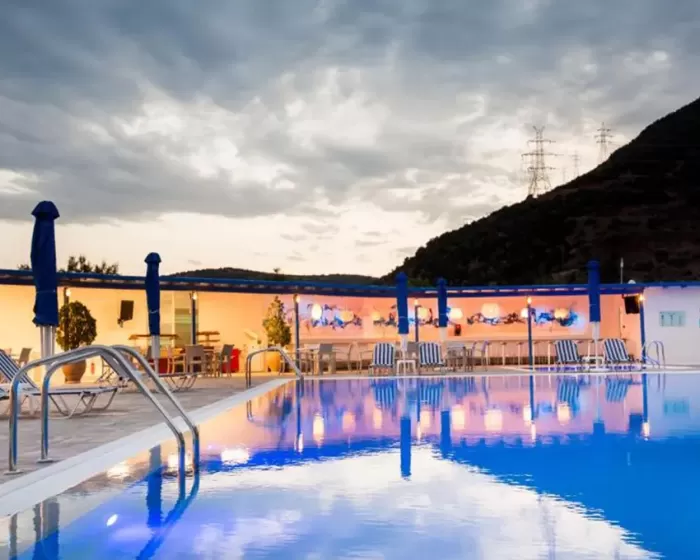 Delphi Beach Tolofonos je kompletno renoviran 2011. godine i ima ukupno 177 soba koje mogu ugostiti do četiri osobe. U svom sastavu ovaj porodični hotel ima i veliki otvoreni bazen, celodnevnu animaciju za decu, a ležaljke i suncobrani na šljunkovitoj plaži su u sklopu usluge hotela.