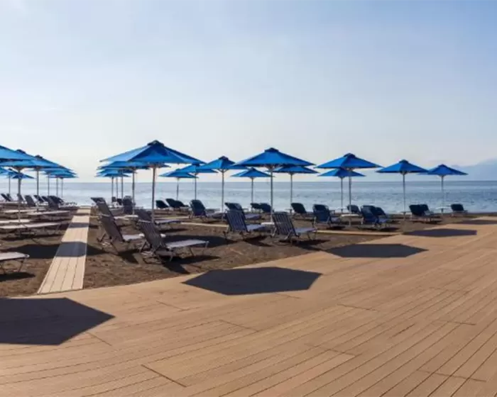 Hotel Delphi Beach je pre svega porodični all inclusive koncept hotel koji se nalazi na sopstvenoj plaži Tolofonos, u blizini mesta Eratini. U potpunosti sakriven gustim zelenilom, svojim gostima nudi bezbrižan porodični odmor na obalama Peloponeza. Fantastična pozicija hotela - slikovito i romatično selo Galaxidi je od hotela udaljeno 20 kilometara, luka i trgovinski centar Nafpaktos 35 kilometara, a arheološki najpoznatiji lokalitet Delfi je na oko 50 kilometara udaljenosti od hotela, obavezan obilazak tokom boravka.