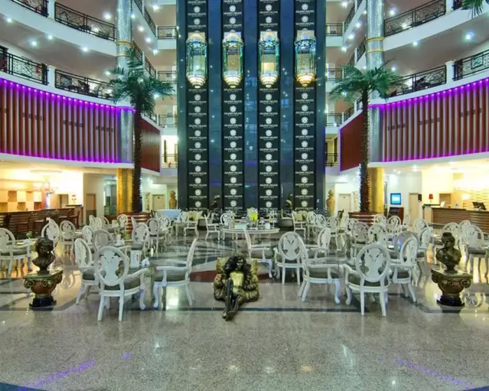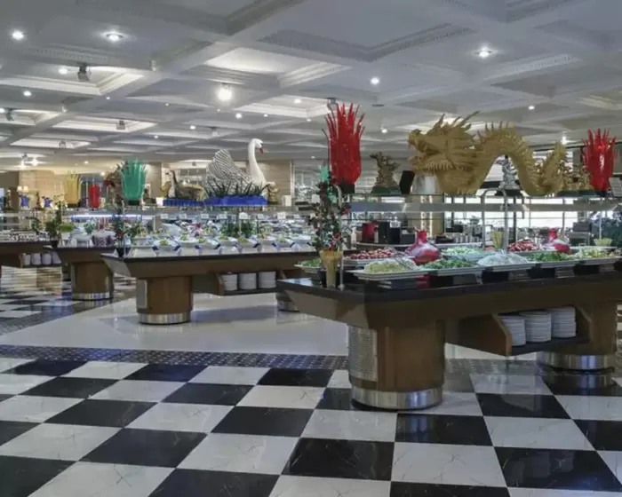 Ishrana: doručak, ručak i večera - švedski sto. (ultra all inclusive)Ultra all inclusive (ultra sve ukjlučeno) na bazi otvorenog bufea - samoposluživanje, izbor više jela (švedski sto), šampanjac dobrodošlice, doručak, kasni doručak, jutarnja užina, ručak, popodnevna užina i kolači, kafa, čaj, sendviči, sladoled, sveži voćni sokovi, večera, kasni ponoćni bufe, domaća i neka uvozna alkoholna i bezalkoholna pića, turska kafa, mini bar u sobama (bezalkoholna pića, pivo, voda, orašasti plodovi i čokolada se dopunjuju svakodnevno), brunch nedeljom, A’la Carte restorani uz rezervaciju unapred (samo jedan restoran jednom u toku boravka od 7 noći, svaka sledeća poseta - uz doplatu), diet bufe i dečiji bufe su na raspolaganju u glavnom restoranu.